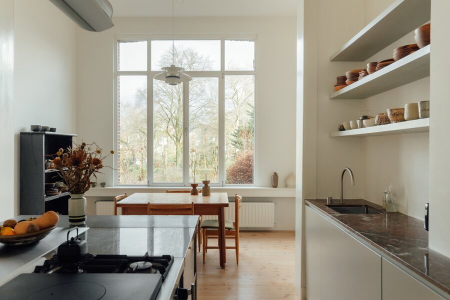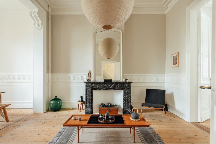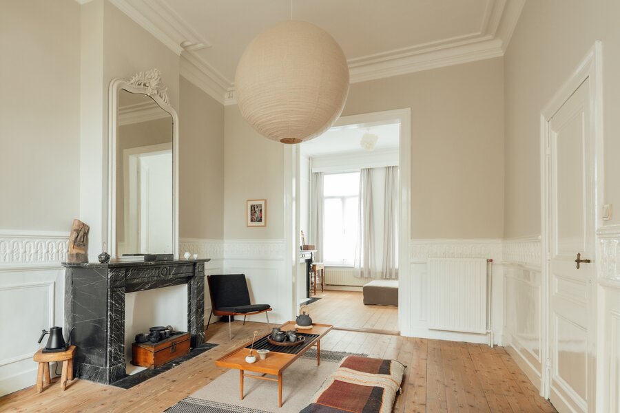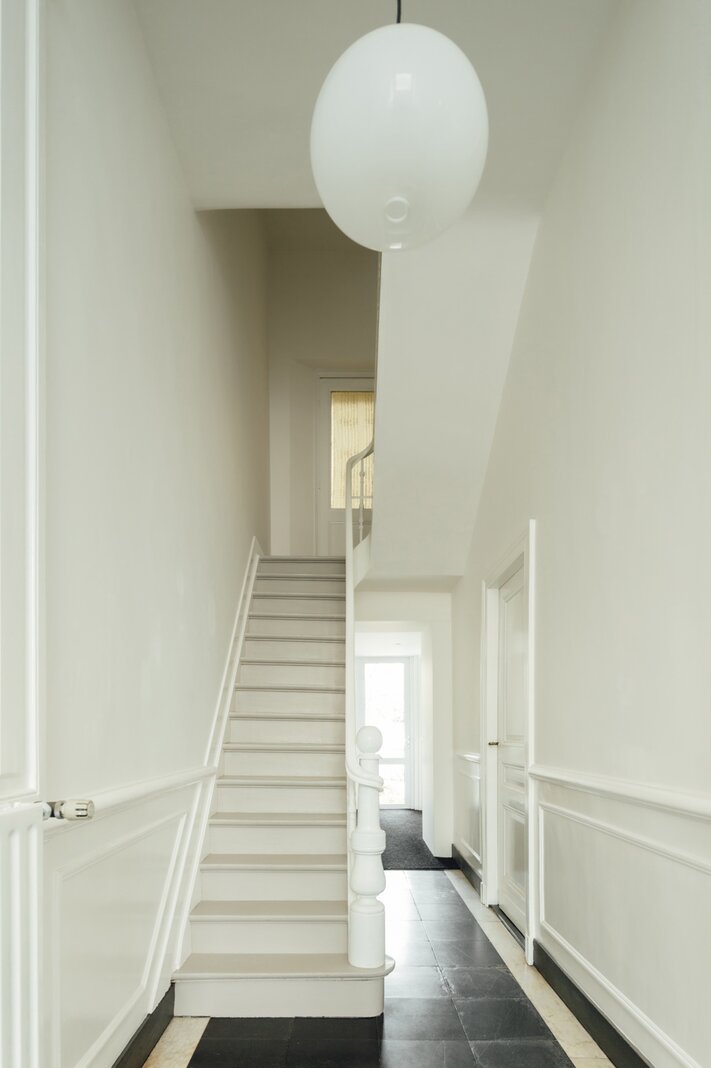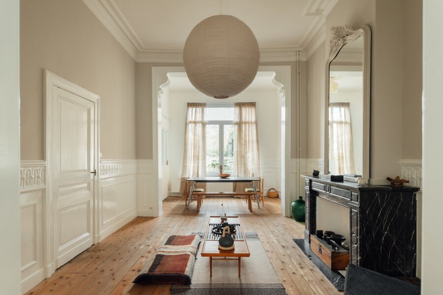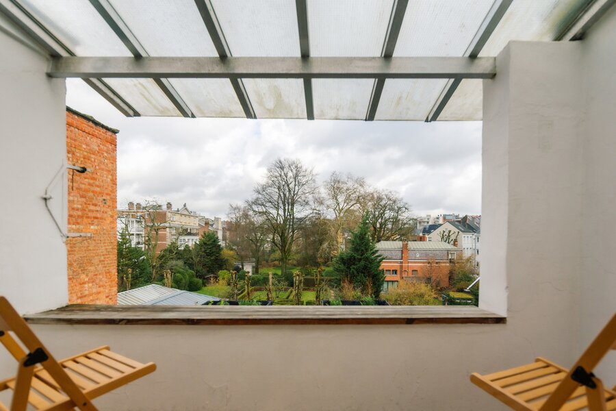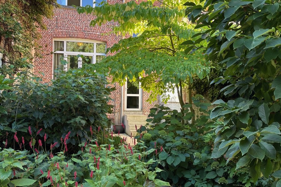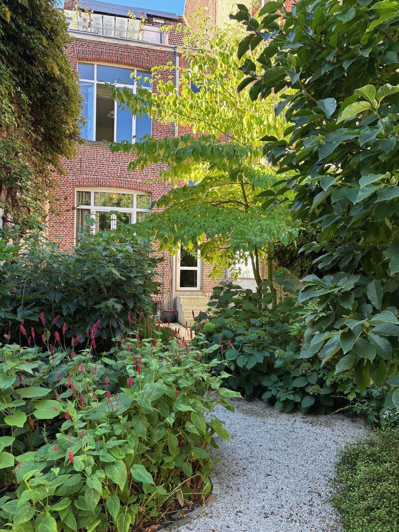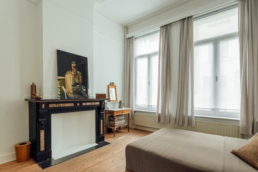 Deze statige burgerwoning werd in 2018 zorgvuldig onder handen genomen en getransformeerd tot bel-etage, met het architectenbureau van de toenmalige eigenaars op het gelijkvloers. Hierdoor kent de woning vandaag een eerder atypische, maar uitermate geslaagde indeling: woonkamer en keuken werden een niveau opgetild. Momenteel doet de hele begane grond dienst als 2e slaapkamer met en suite woonkamer, maar je maakt hier ook heel eenvoudig twee volwaardige slaapkamers van.