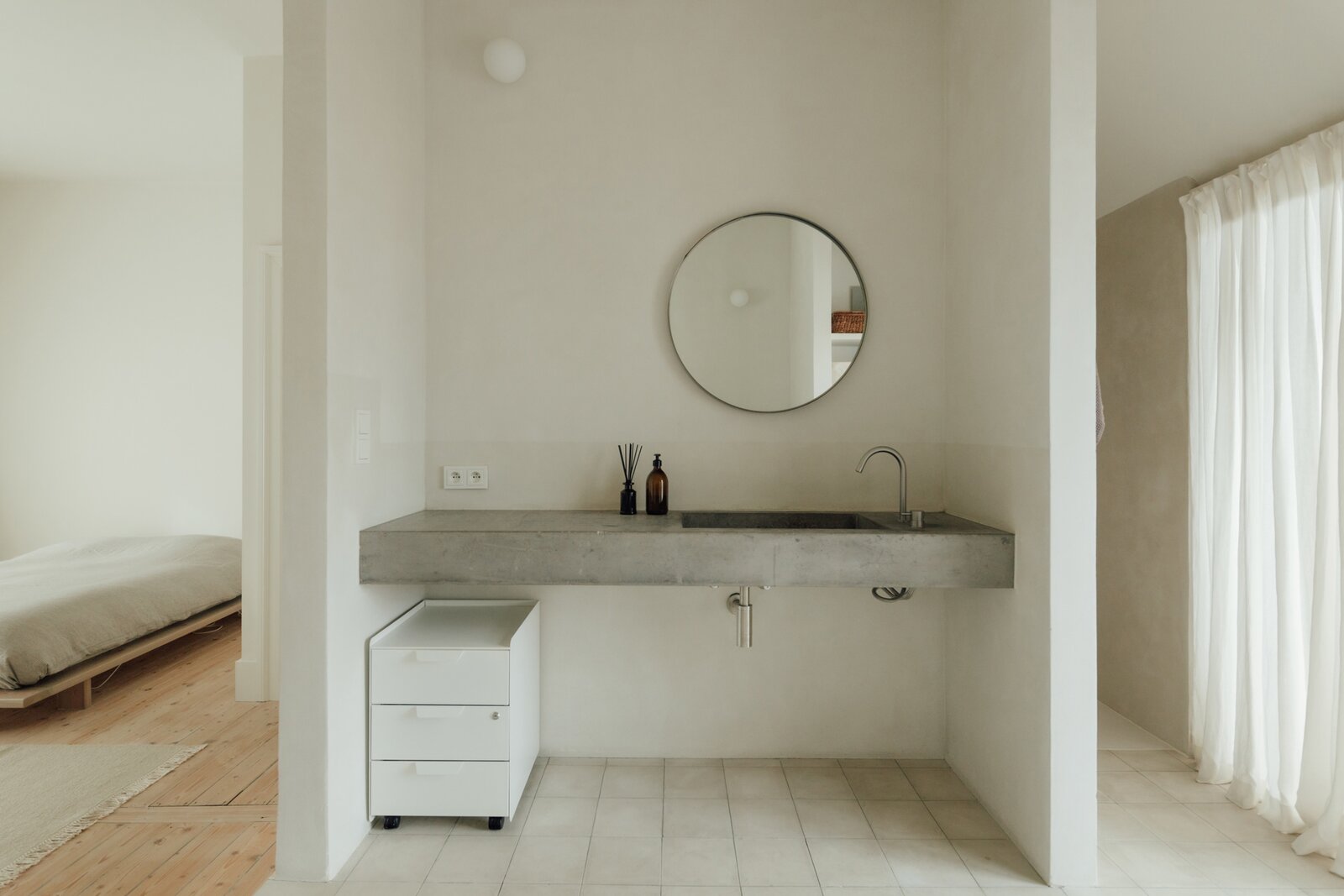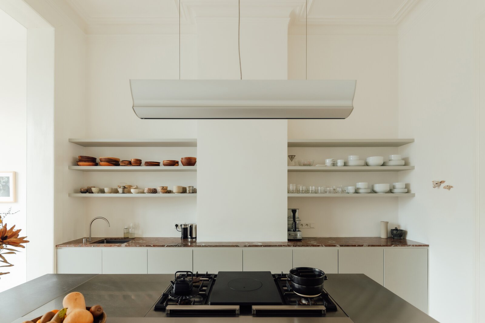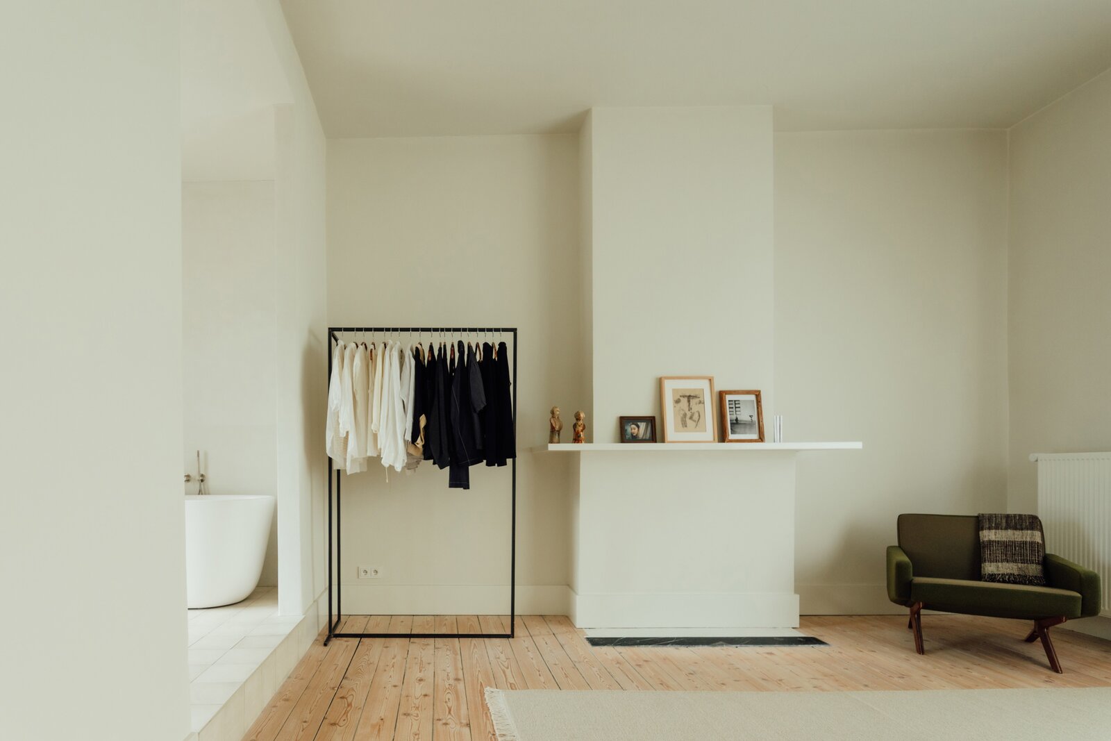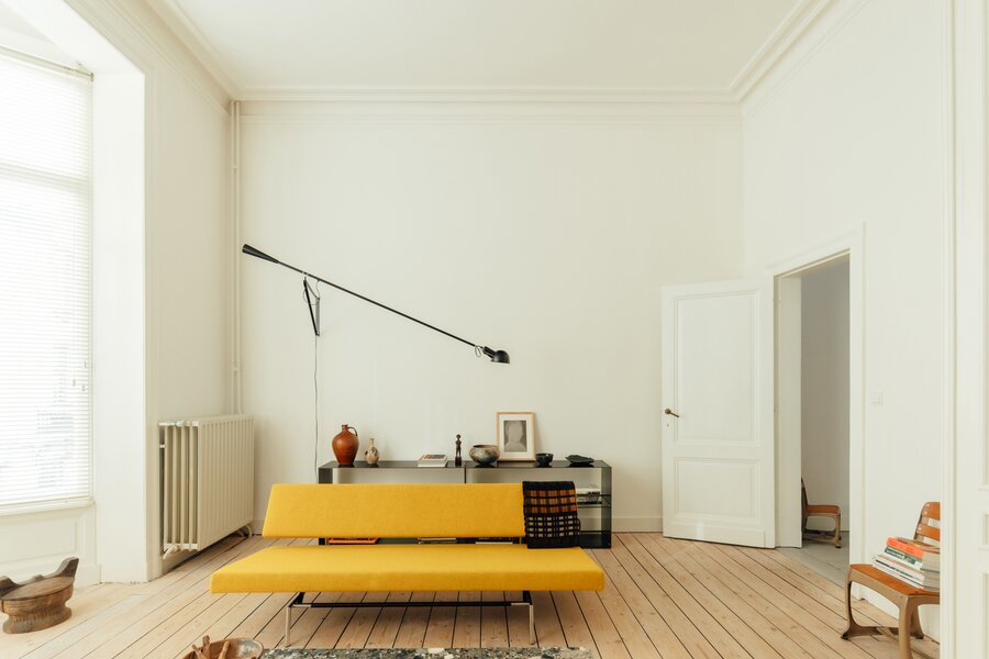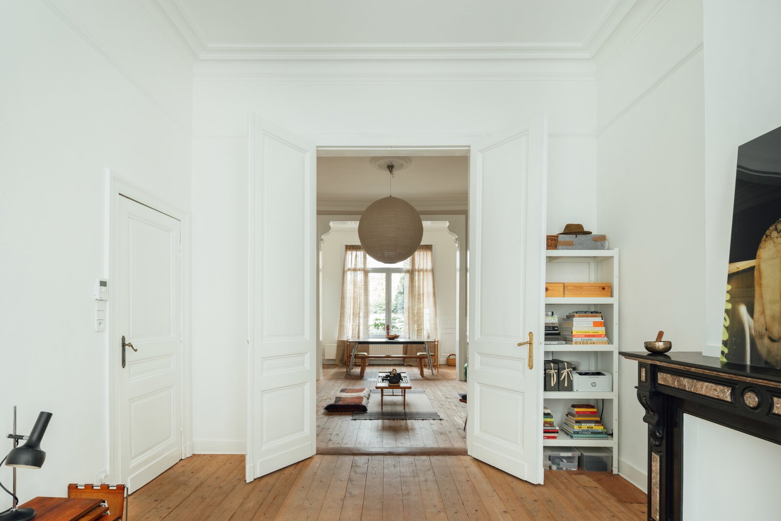 Deze statige burgerwoning werd in 2018 zorgvuldig onder handen genomen en getransformeerd tot bel-etage, met het architectenbureau van de toenmalige eigenaars op het gelijkvloers. Hierdoor kent de woning vandaag een eerder atypische, maar uitermate geslaagde indeling: woonkamer en keuken werden een niveau opgetild. Momenteel doet de hele begane grond dienst als 2e slaapkamer met en suite woonkamer, maar je maakt hier ook heel eenvoudig twee volwaardige slaapkamers van.