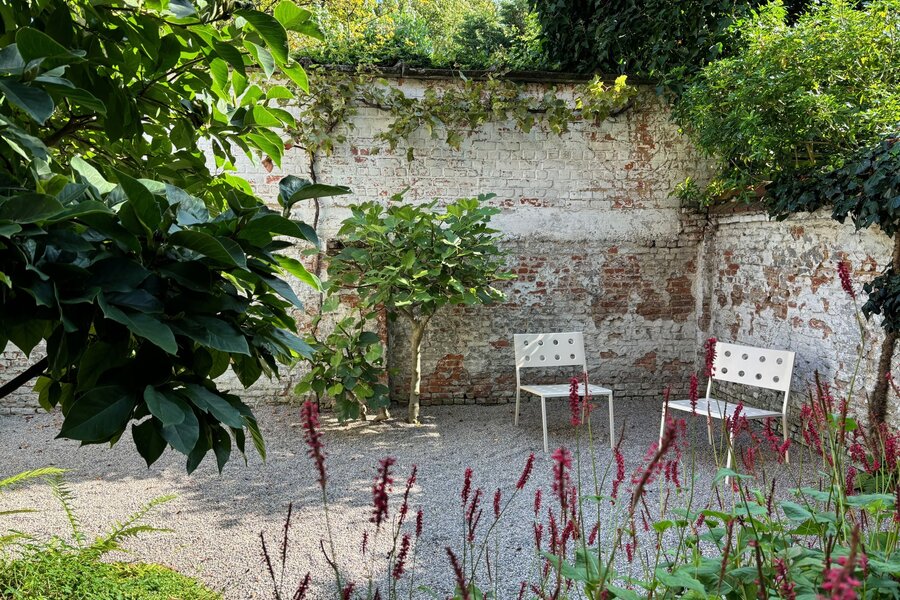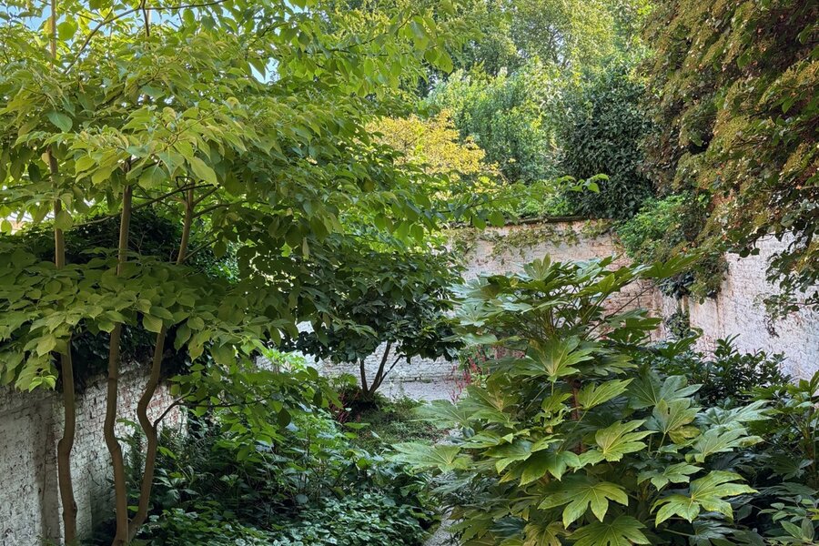 Op de tussenverdieping vind je een eerste badkamer met toilet en designbad. Dan kom je op de eerste verdieping, met vooraan de woonkamer met mooie erker en authentieke schouw. Het marmer van deze schouw vormde de inspiratie voor het werkblad in de prachtige keuken met hoogwaardige toestellen en veel kastruimte. De eetkamer ligt aan het raam achteraan – geniaal, want zo kijk je tijdens het eten uit op je eigen grote, rustige tuin en de parktuinen van de achterburen.