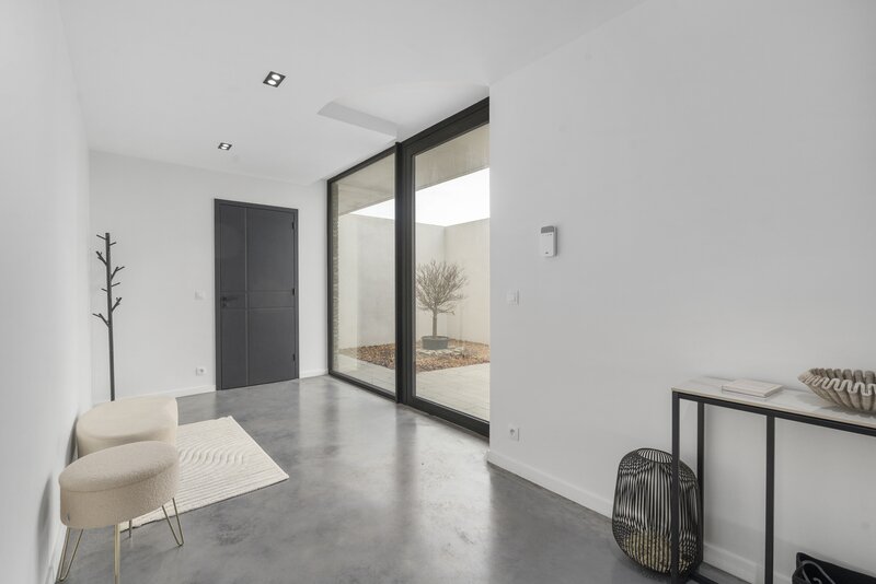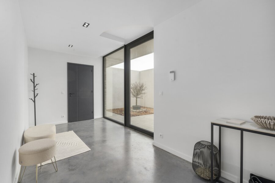 - Inkomhal (17,2 m²) en nachthal (22,3 m²) met ingemaakte kasten