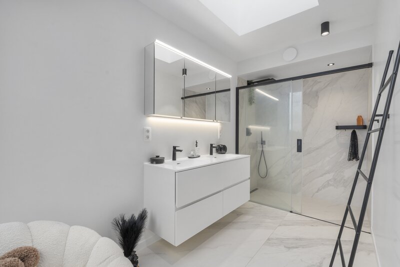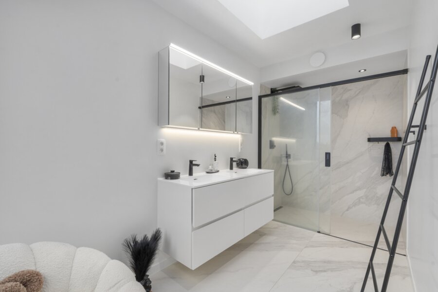 - 2 badkamers met inloopdouche en wastafelmeubel