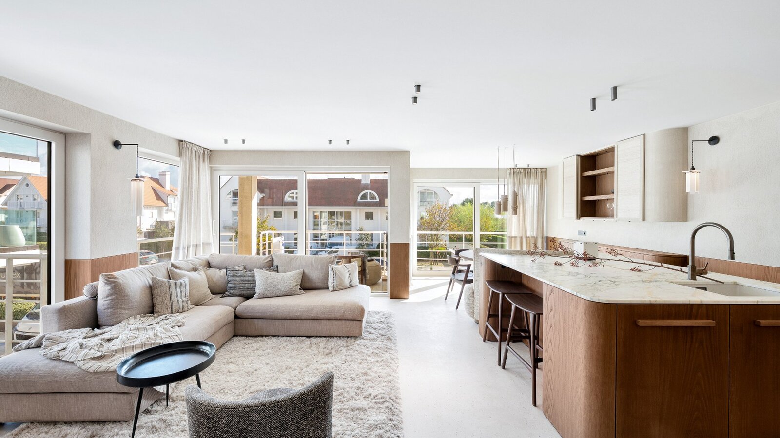 Volledig vernieuwd hoekappartement in een exclusieve villaresidentie in het hart van het Zoute.