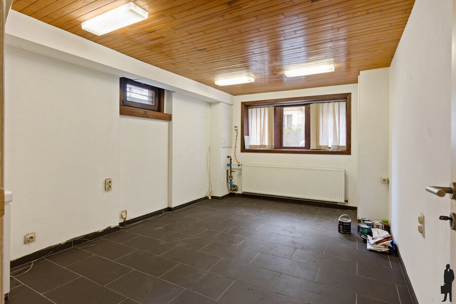 De kelderverdieping biedt een polyvalente ruimte (bureau/hobbykamer), berging, wasplaats, technische ruimte en extra toilet, met toegang tot de tuin.