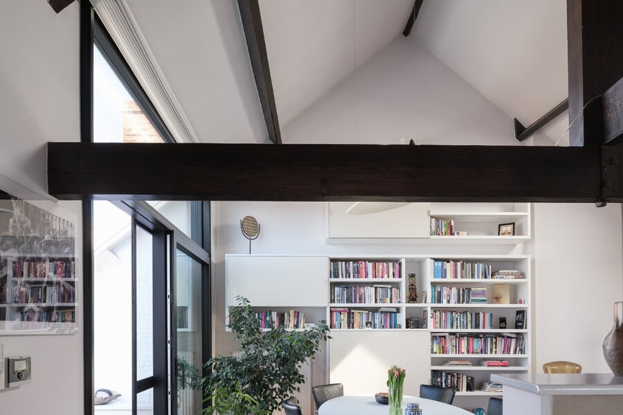 Op de tweede verdieping vinden we een ruime overloop, drie volwaardige slaapkamers en een recent vernieuwde badkamer met inloopdouche. De bovenste verdieping is ingericht als sfeervolle leefruimte met aansluitend een dakterras dat een magnifiek uitzicht biedt over de stad. Uitgesneden uit het dakvolume biedt het terras een zonnige, beschutte plek met bijzonder veel privacy.