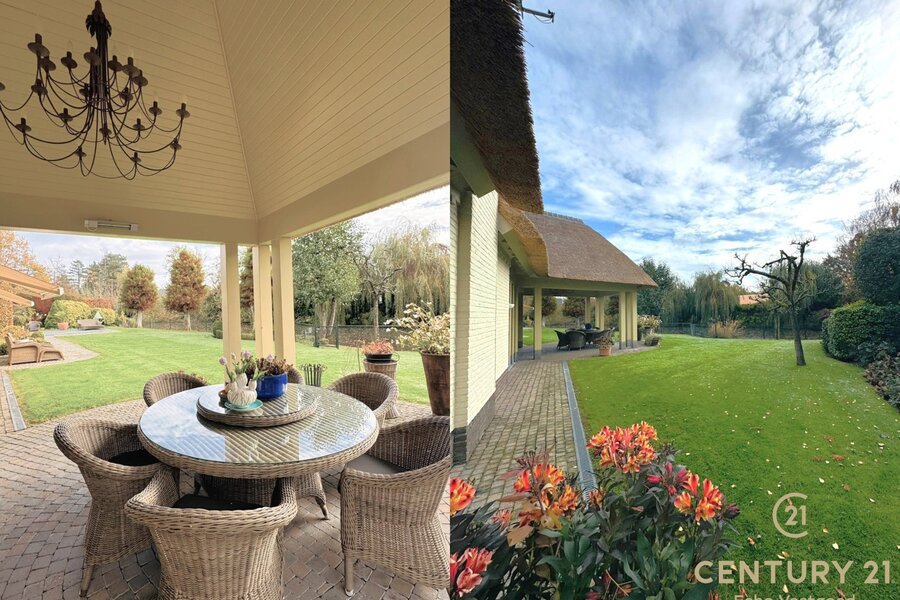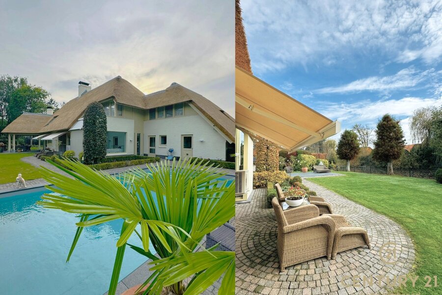 De villa beschikt over een nieuwe rieten kap, goed voor decennialang zorgeloos wooncomfort. In de prachtig aangelegde tuin geniet u van een vernieuwd en verwarmd buitenzwembad en een sfeervolle vijver die het buitenleven een haast vakantiesfeer geven.