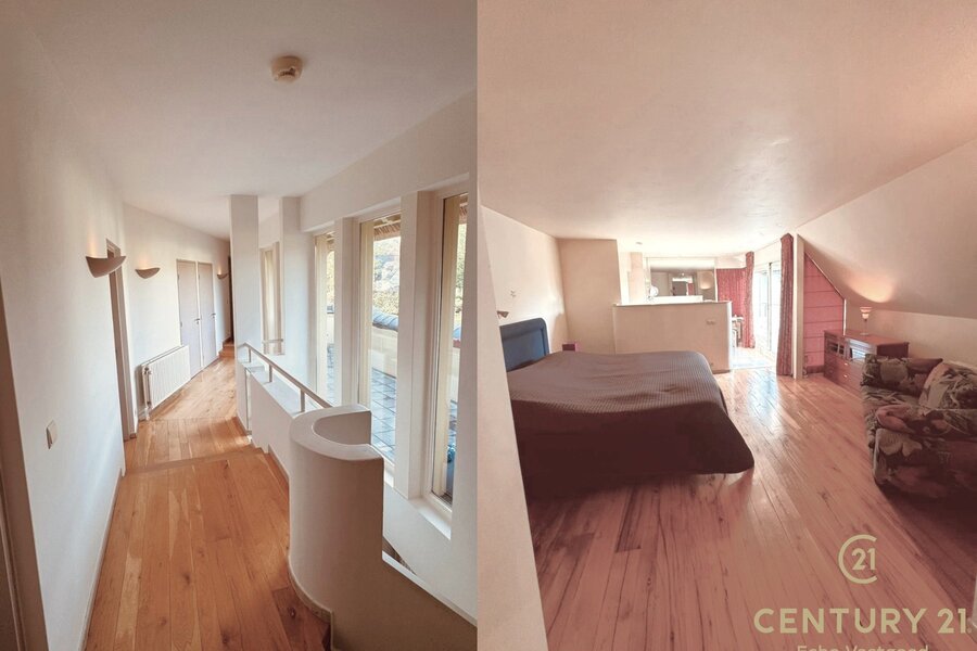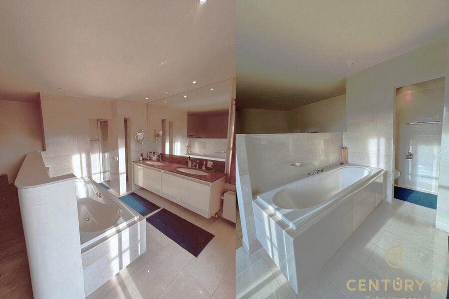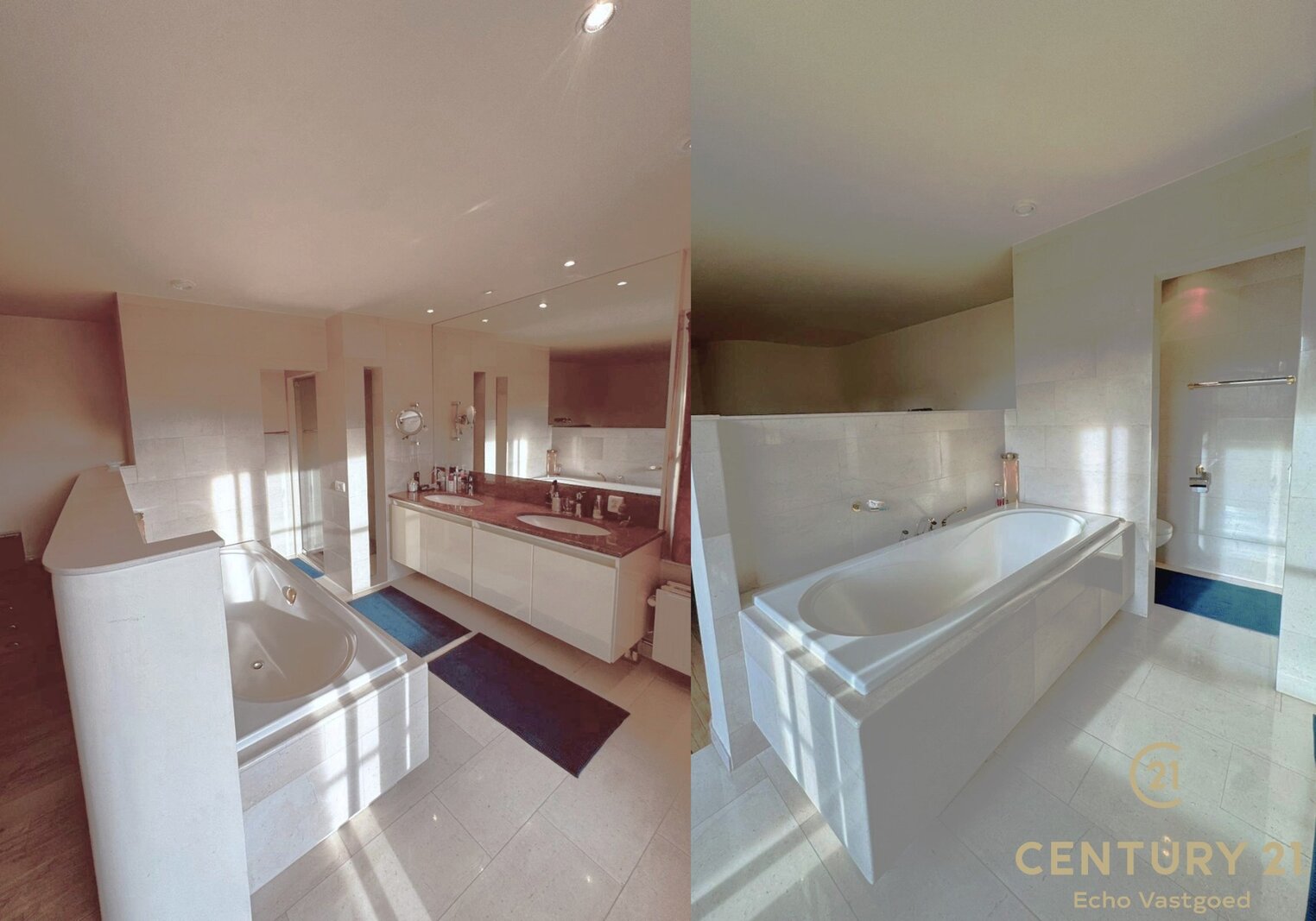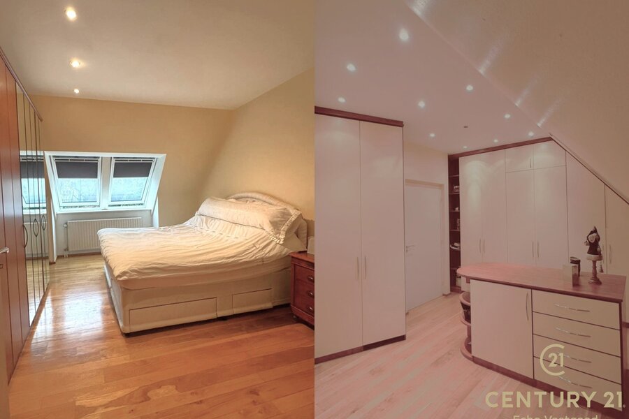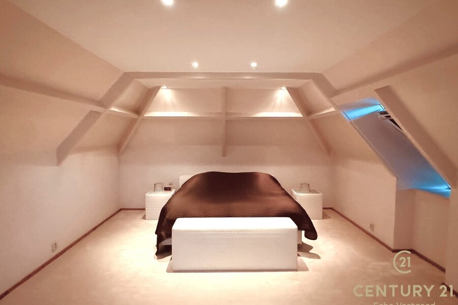 De hoofdslaapkamer beschikt over een ensuite luxe badkamer met ligbad, douche, toilet en dubbele wastafel. De tweede badkamer is gemeenschappelijk en bevindt zich aan de nachthal. Op deze verdieping werd deels gekozen voor een massief eiken parketvloer, wat de ruimtes een warme, tijdloze uitstraling geeft.