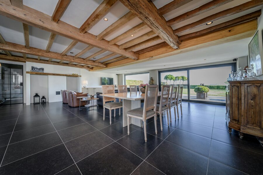 - lichtrijke leefruimte met authentieke balken en prachtig zicht over de velden
