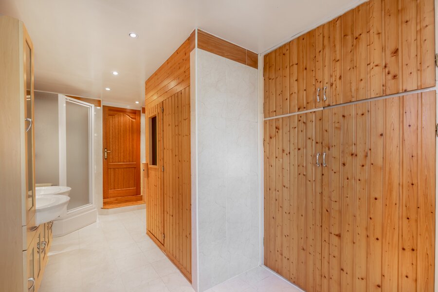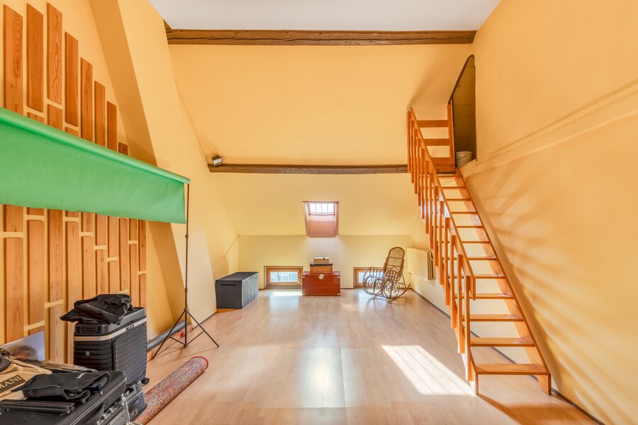 Op de hogere tussenverdieping vindt u een badkamer met sauna en een praktische was- en strijkkamer. De tweede verdieping herbergt nog twee prachtige, zonnige slaapkamers, waarvan één met een balkon met fraai uitzicht en toegang tot een dressing/berging. De bovenste verdieping onthult een fantastische, zeer ruime kamer met mezzanine en een indrukwekkend plafond dat reikt tot aan de nok. Deze ruimte is perfect te gebruiken als slaapkamer of hobbykamer.