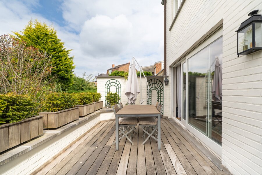 Gelegen in een van de meest gegeerde wijken van Ukkel, stelt Victoire-Junot u deze prachtig huis voor met een totale oppervlakte van ongeveer 240 m² (volgens EPC). Het appartement biedt ruime volumes en een uitstekend wooncomfort. De leefruimte van ± 56,5 m² bestaat uit een ruime en lichtrijke living met een open haard, een volledig uitgeruste keuken en rechtstreekse toegang tot een aangenaam, goed georiënteerd terras van ± 19,5 m². Het slaapgedeelte omvat drie mooie slaapkamers (± 20, 18 en 14 m²), waarvan twee met ingebouwde kasten, evenals een badkamer en een doucheruimte. Een wasruimte, een garage voor twee wagens en een buitenparkeerplaats vervolledigen dit uitzonderlijke pand.