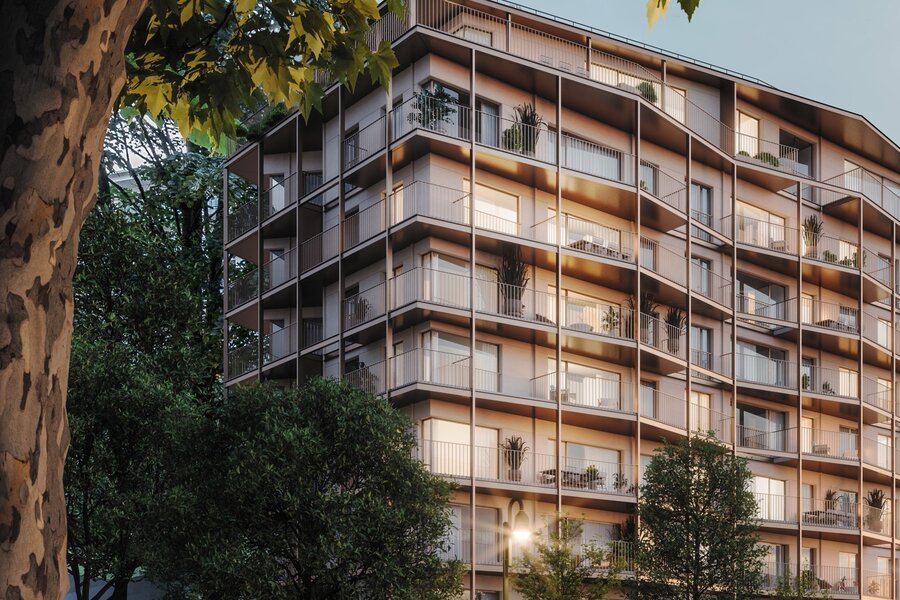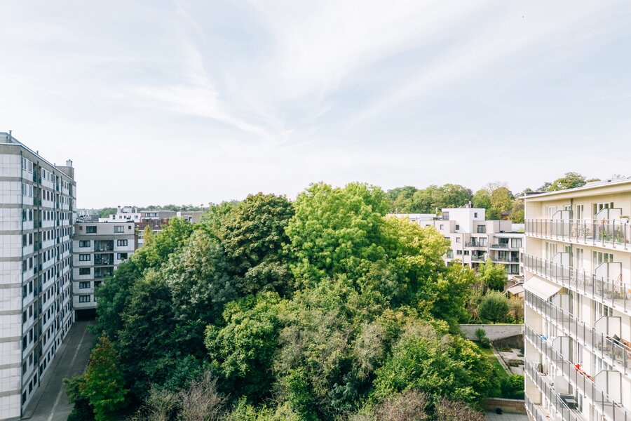 Schitterend afgewerkt, licht gebouw - luxueuze inrichting - minimale koolstofvoetafdruk voor bouw en verbruik (zonnepanelen leveren elektriciteit voor de gemeenschappelijke ruimtes, regenwater wordt ook gerecupereerd voor de gemeenschappelijke ruimtes), tuin met bomen.
