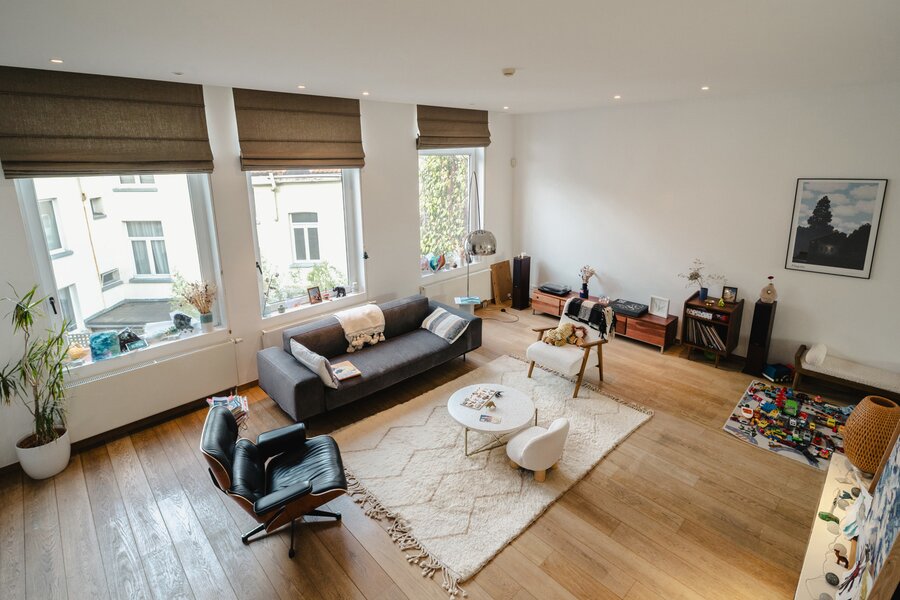 Gelegen nabij het Vorstpark en het stadhuis van Sint-Gillis, in de voormalige ateliers van Sermon en Pletinckx, biedt dit duplexappartement een bruto vloeroppervlakte van 243 m² (EPC).