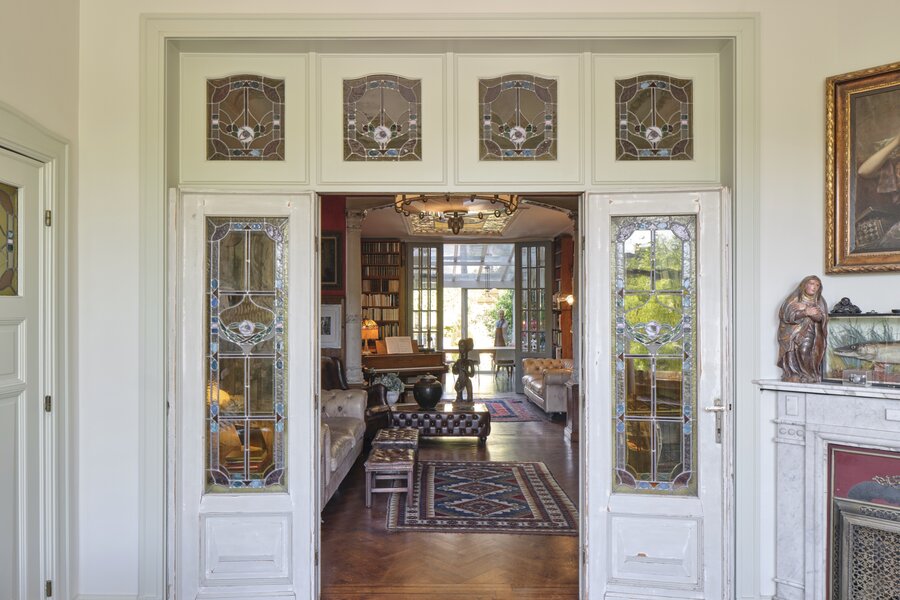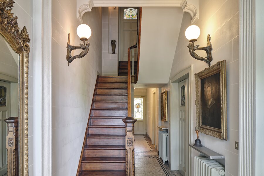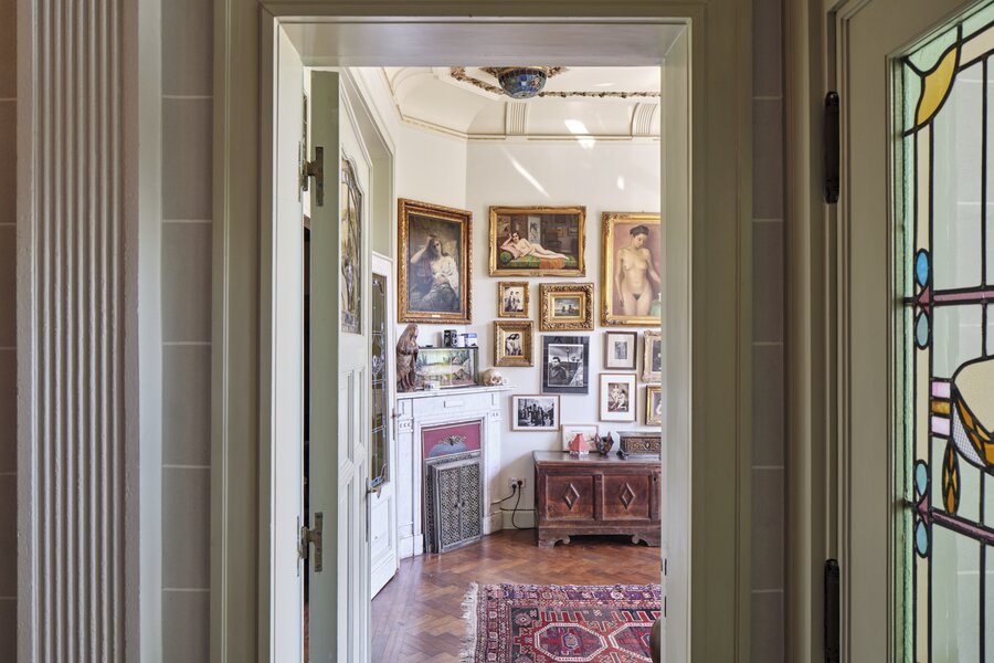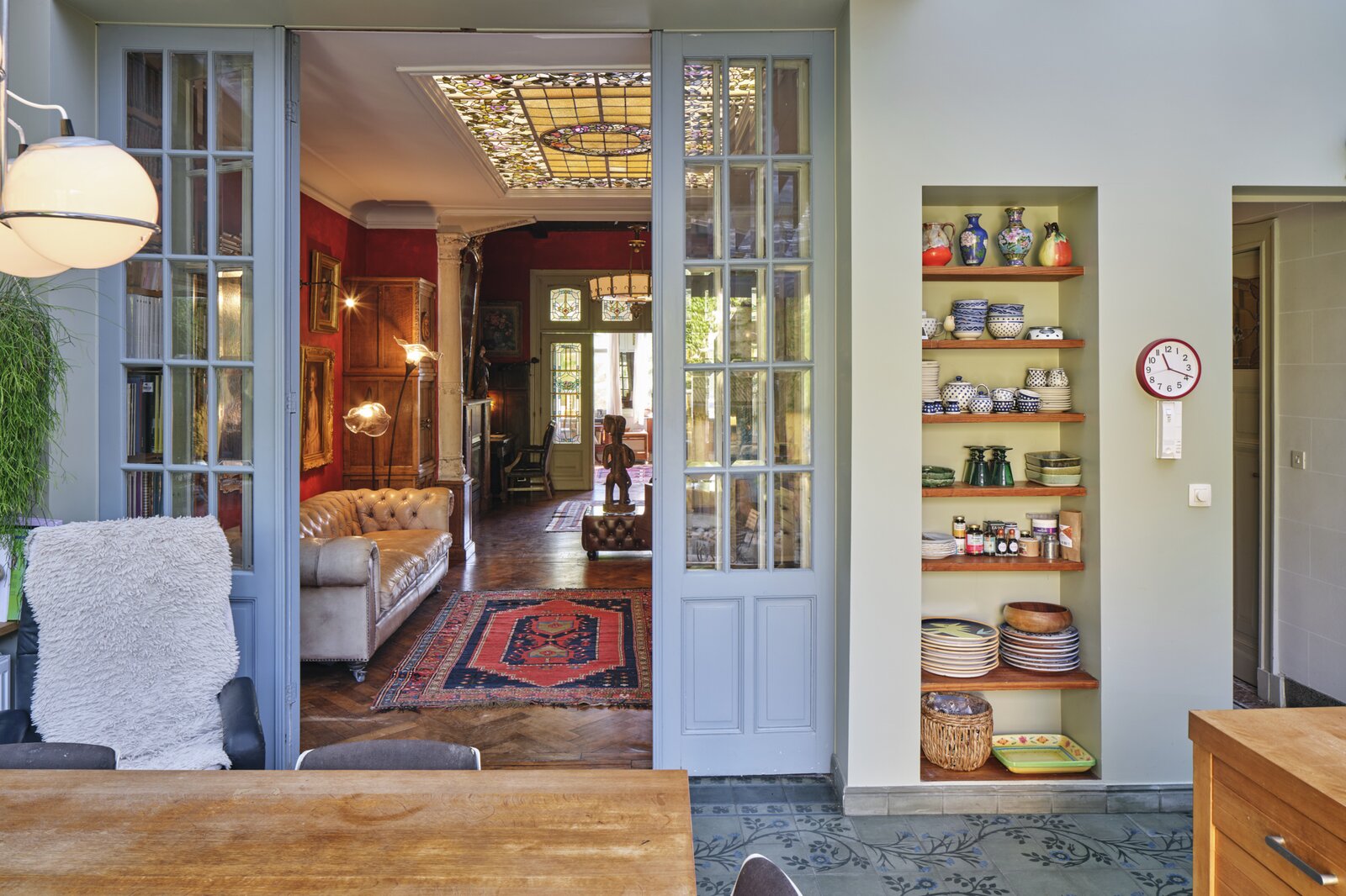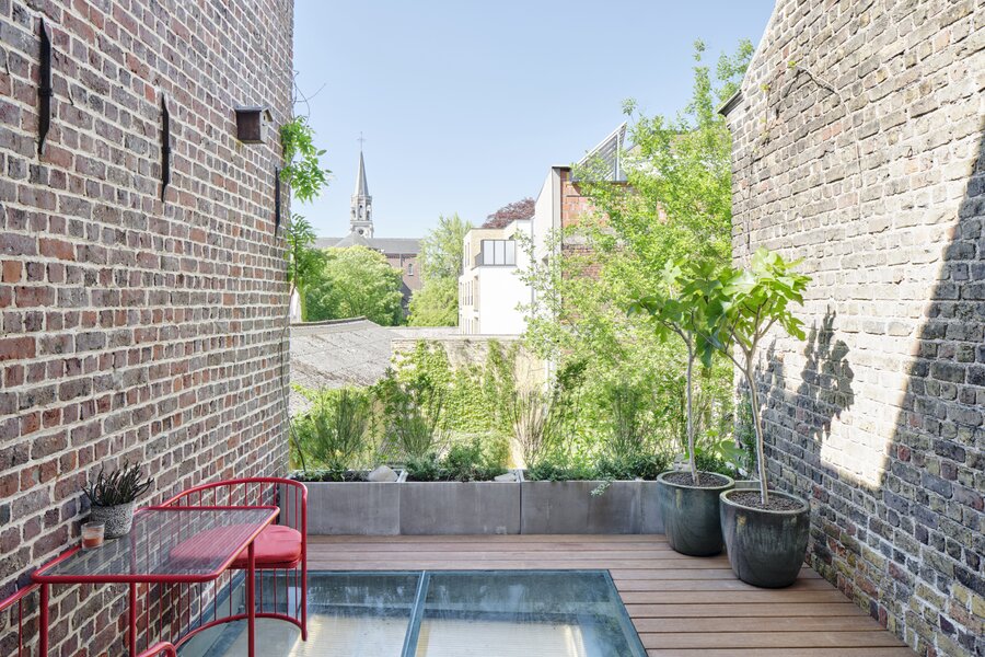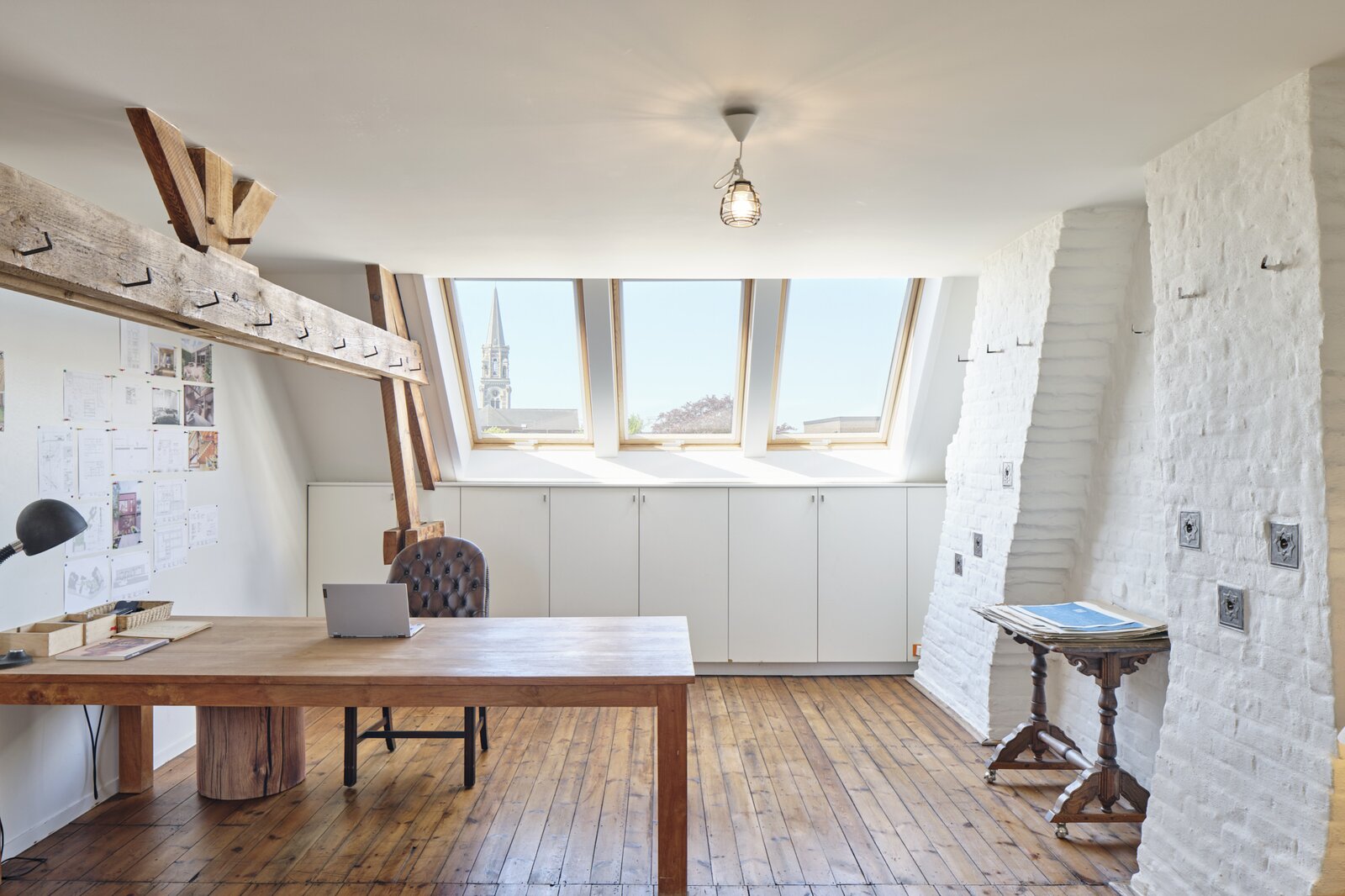 Aan het monumentale Stationsplein van Roeselare staat een unieke woning met uitzonderlijke architecturale waarde. Dit art-decoburgerhuis met achterliggend magazijn werd ontworpen in 1922–1923 door de gerenommeerde architect Ernest Apers, wiens naam nog altijd prijkt op de gevel. De monumentale gevel met geometrische erkers, fijne baksteenfriezen en een elegante smeedijzeren deur weerspiegelt een overgangsperiode tussen art nouveau en art deco. Binnen tref je een doordachte indeling: een verhoogde leefruimte voor meer licht en privacy, een benedenverdieping met slaapkamer, bibliotheek en royale badkamer, en een indrukwekkende inkom met mozaïekvloer en glas-in-lood. De leefruimtes op de verdieping bieden klassieke verhoudingen, een eetkamer met zicht op het plein en een uitbouw richting de tuin. De omsloten stadstuin vormt een groene patio, ideaal als rustgevende buitenkamer. Achteraan ligt een voormalig atelier met mezzanine, aparte toegang en groot herbestemmingspotentieel: perfect voor creatievelingen, zelfstandigen of wie extra woonruimte zoekt. Dit erfgoedpand combineert karakter, geschiedenis en toekomst – een kans voor wie meer zoekt dan vier muren.
