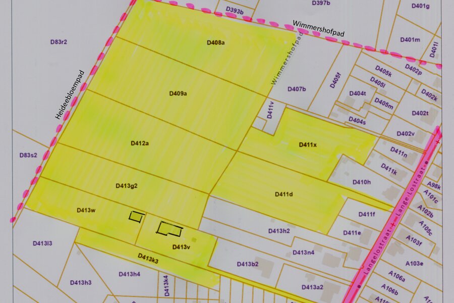 * toegang met grote landbouwmachines mogelijk via achterliggende straat (Wimmershof)