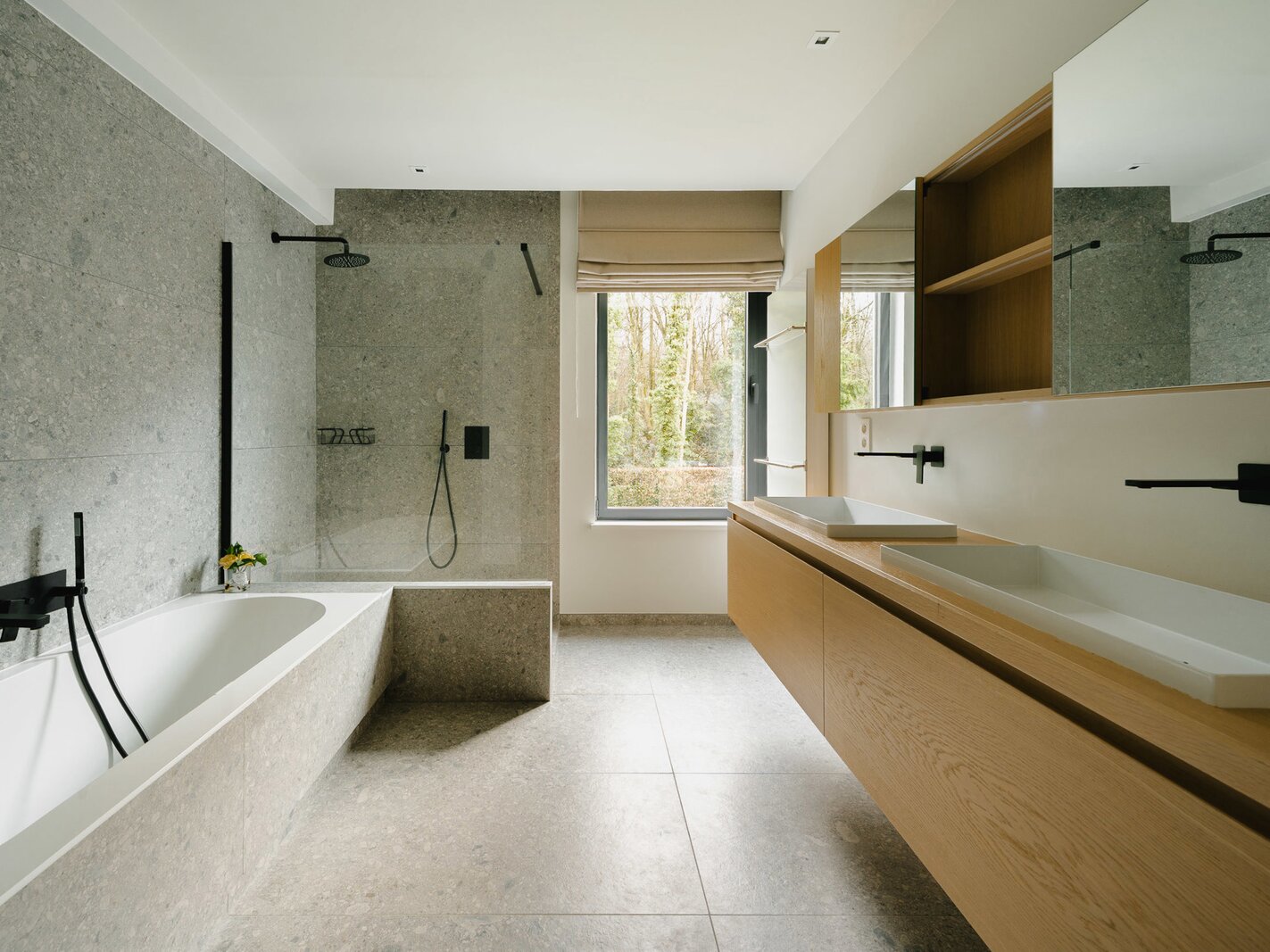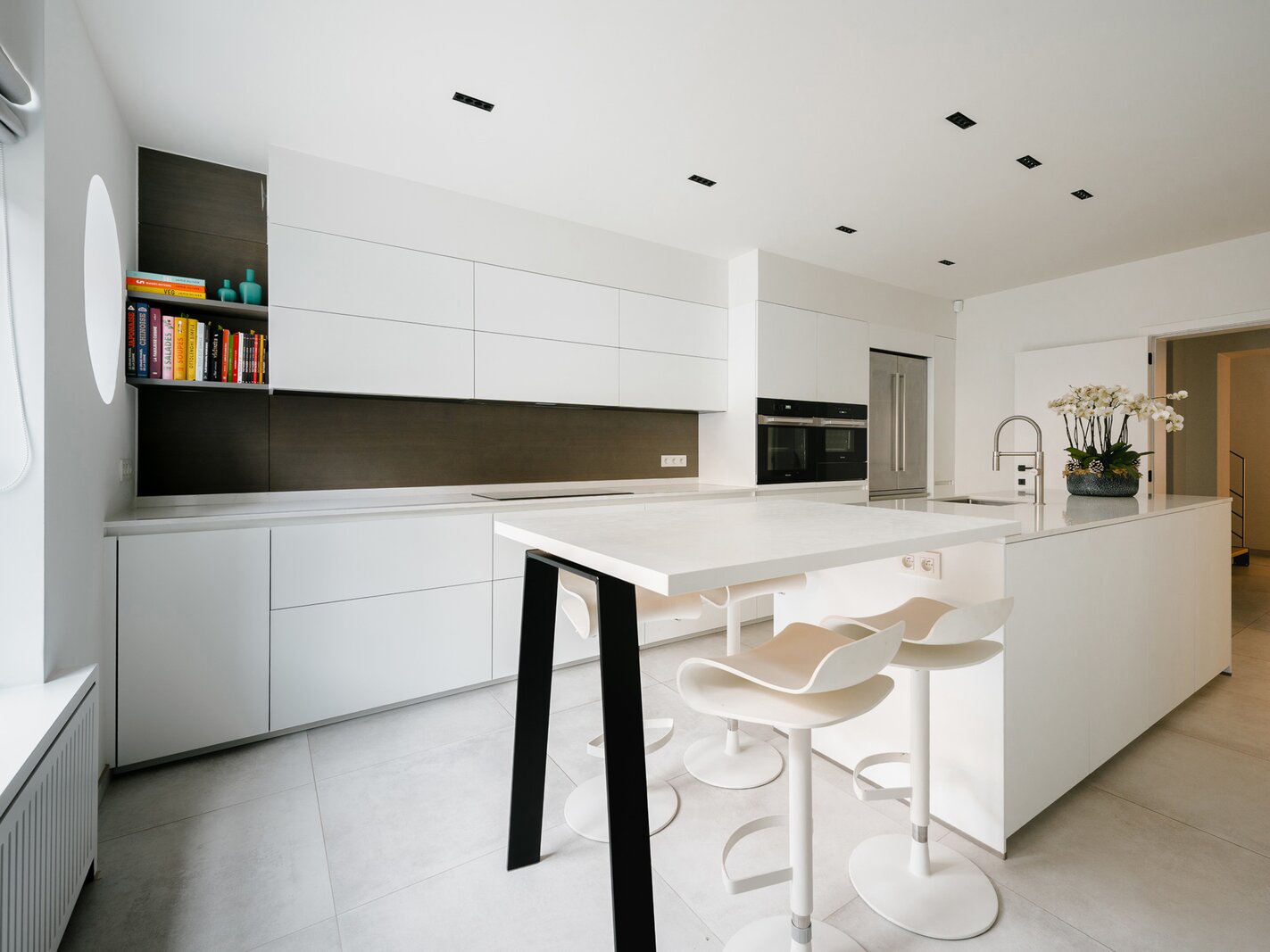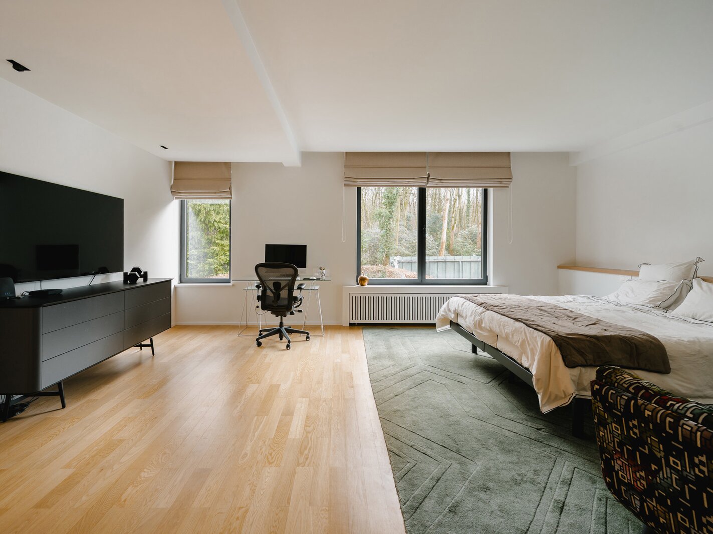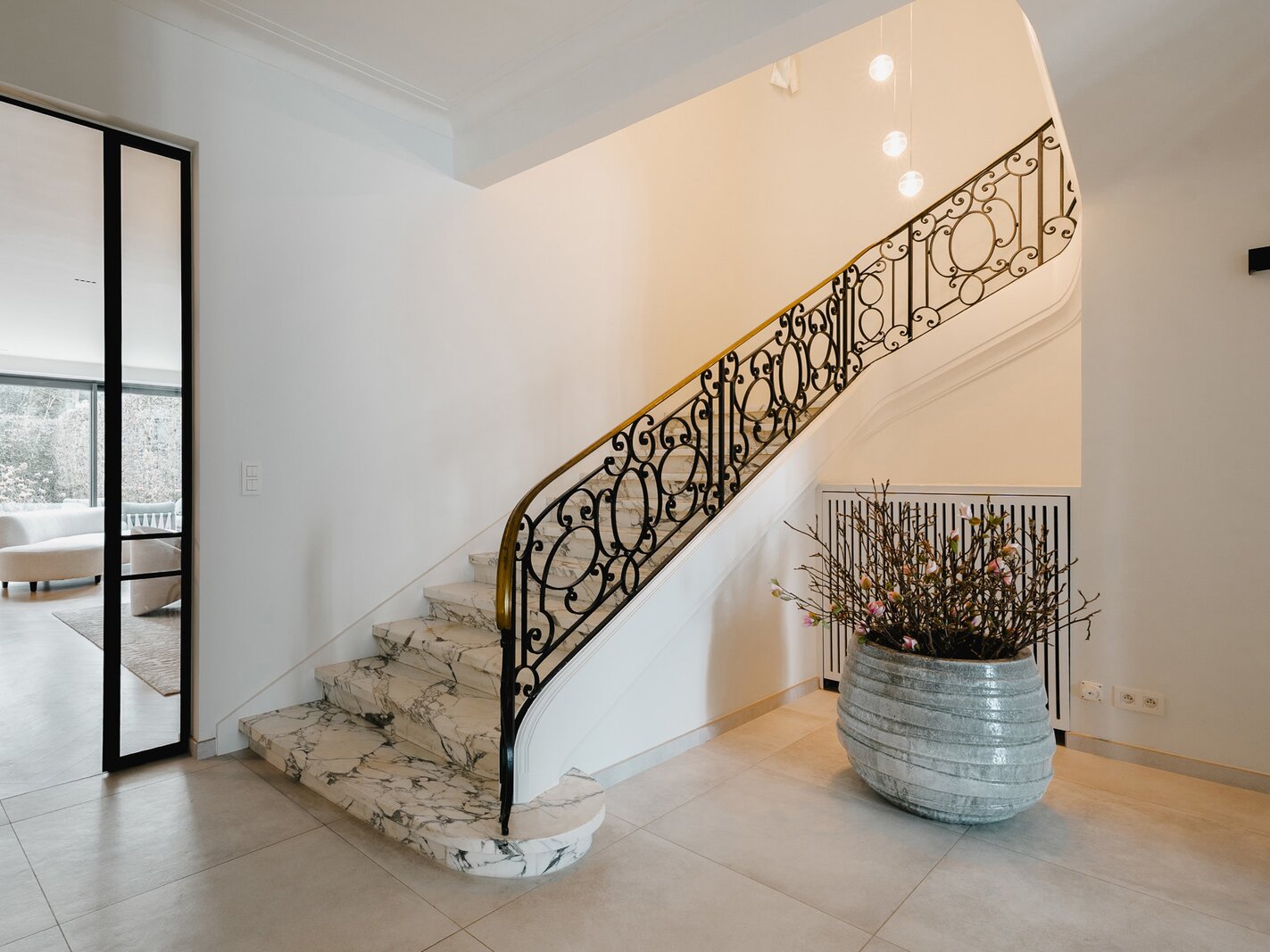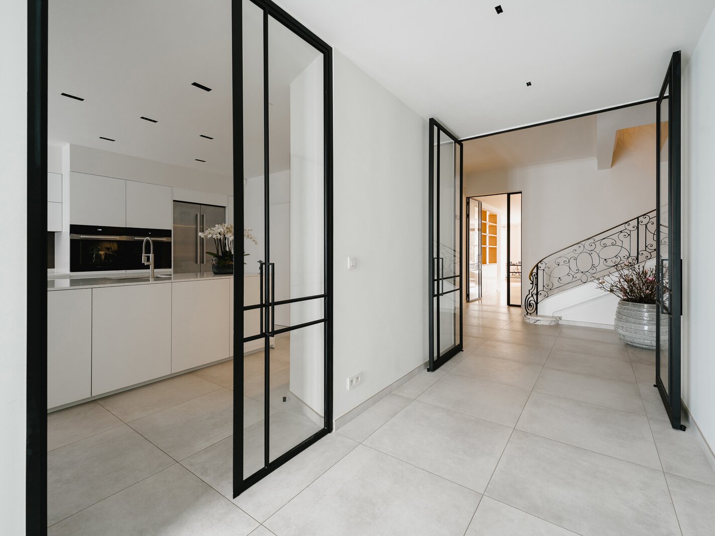 Aan de rand van het park Bois de la Cambre opent deze herenwoning zich naar een ruime entreehal met een marmeren hoofdtrap, garderobe en gastentoilet. Vanuit hier bereikt u de woonruimtes, perfect om gasten te ontvangen, badend in natuurlijk licht dankzij grote erkers die uitkijken op de op het zuiden georiënteerde tuin. Deze omvatten een woonkamer met open haard en een eetkamer met plaats voor 18 personen. Een aparte, volledig uitgeruste keuken met ontbijthoek completeert deze verdieping. De hoofdtrap leidt naar de slaapvertrekken, bestaande uit een master bedroom met een dubbele kleedkamer en en-suite badkamer, en twee extra slaapkamers, elk met een inbouwkleedkamer en en-suite doucheruimte. Een diensttrap leidt naar de bovenverdieping, waar zich een zelfstandig appartement bevindt met drie slaapkamers, een keuken, twee badkamers en een ruim terras.