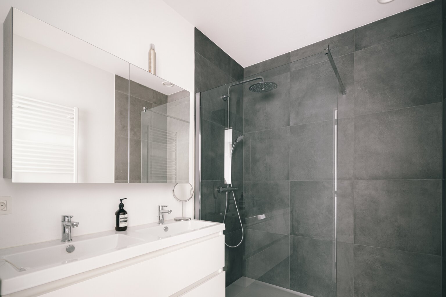 Het tweede appartement is ook volledig instapklaar: inkomhal naar de leefruimte met halfopen, goed geïnstalleerde keuken en een ruime slaapkamer met en suite badkamer. Twee mooie terrassen zorgen all over voor een licht, open en ruimtelijk gevoel in huis. Tot slot heb je hier ook nog twee handige bergingen en een ondergrondse parking.