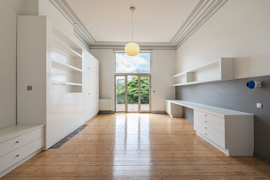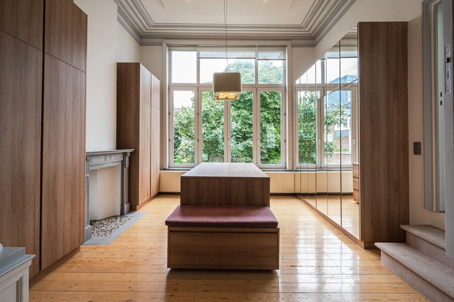 Ideaal gelegen in de Kasteleinswijk, vlak bij de Louizalaan, biedt deze volledig gerenoveerde burgerwoning een bruto vloeroppervlakte (EPC) van ± 562 m², vijf slaapkamers en een perfect georiënteerde tuin.
