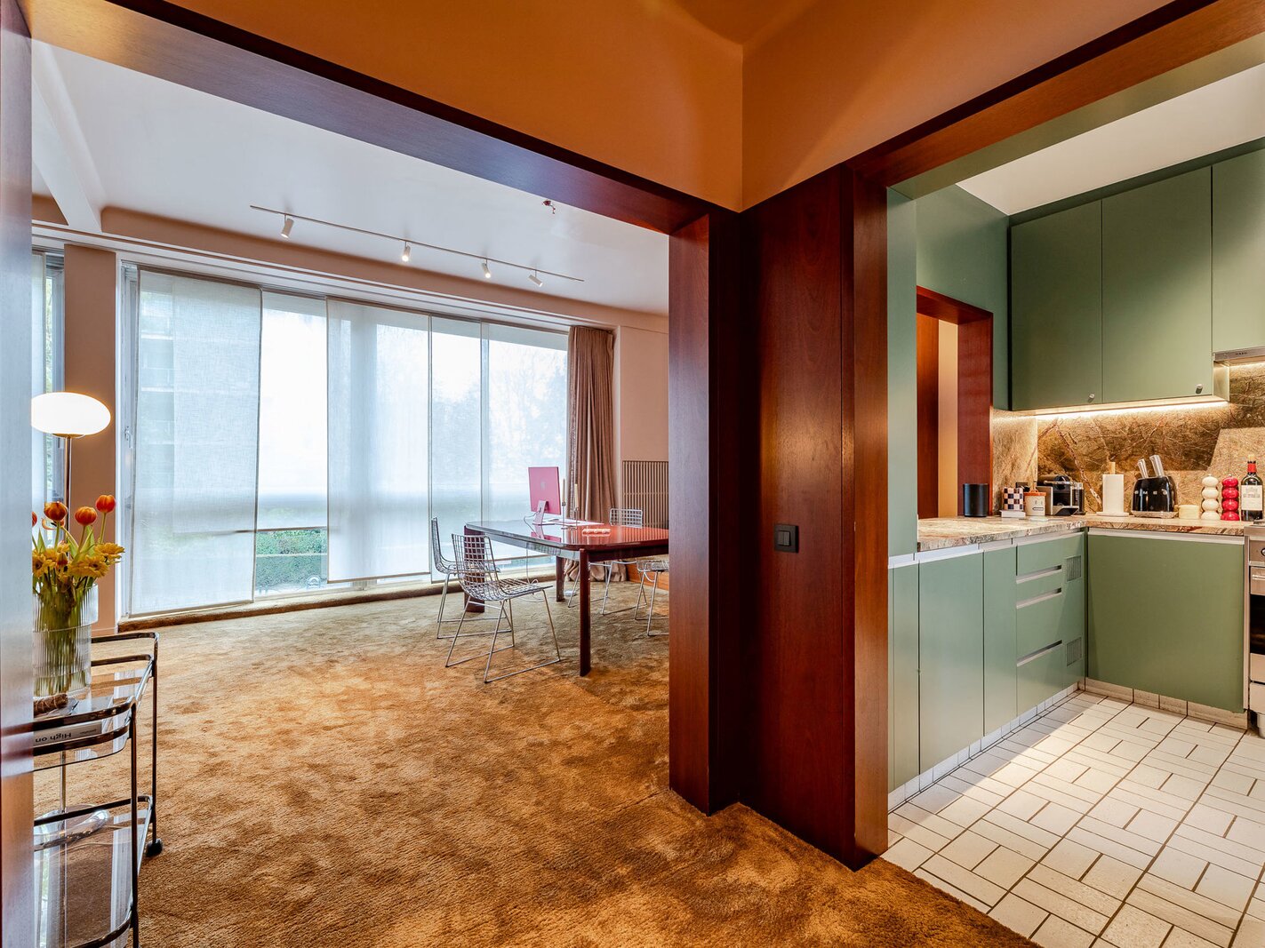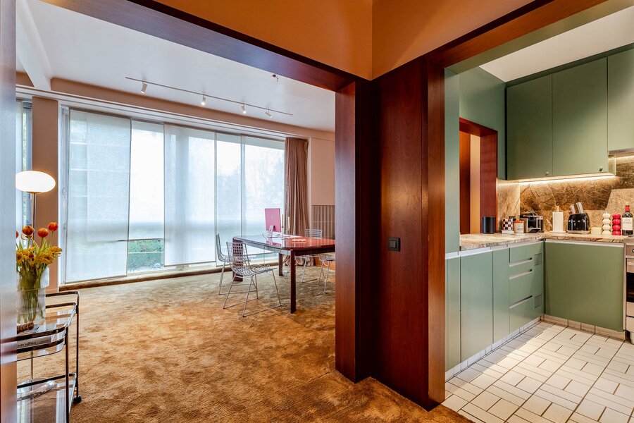 Op ideale locatie, in de buurt van de winkels van het Sint-Pietersplein en het groene Brugmannpark, biedt dit appartement met twee slaapkamers een tijdloze sfeer. Het appartement is met zorg voor detail herontworpen door architect Maxime de Campenaere, die de historische elementen heeft benadrukt en tegelijkertijd de tijdloze esthetiek van de jaren 70 heeft beklemtoond.