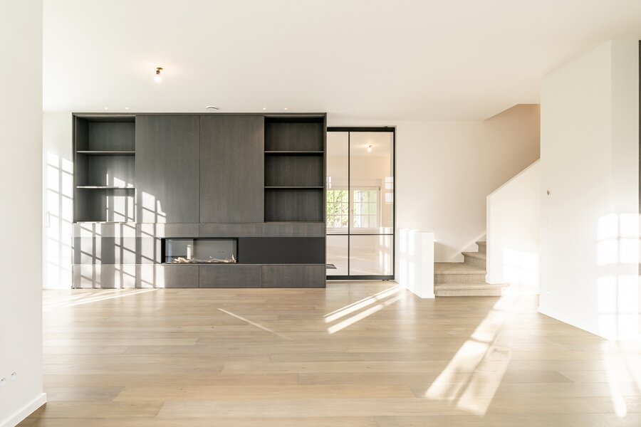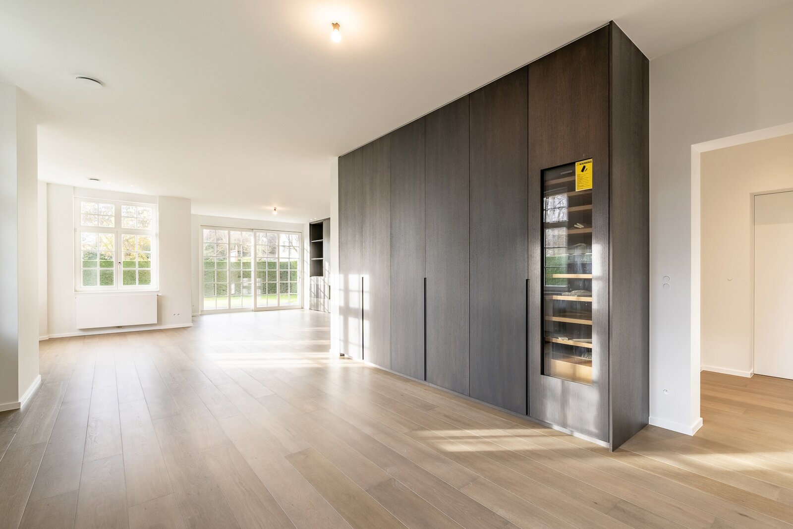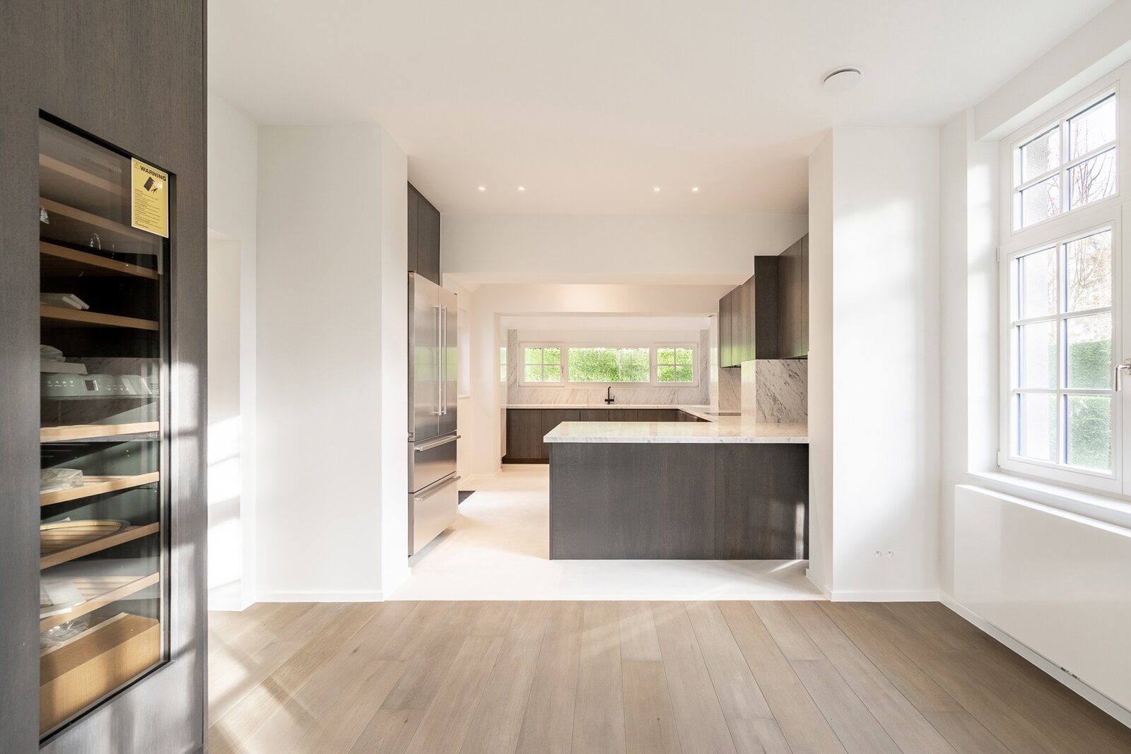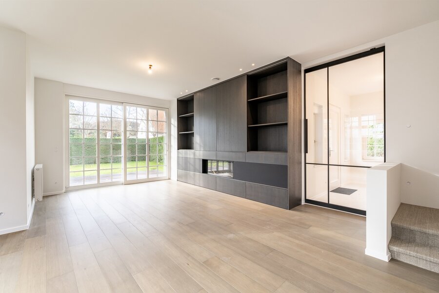 Indeling: inkom met ruime inloopvestiaire, gastentoilet, woonkamer met gashaard, eetplaats met volledige kastenwand en wijnkoeler, volledig geëquipeerde open keuken, aparte bureau of tv-hoek.