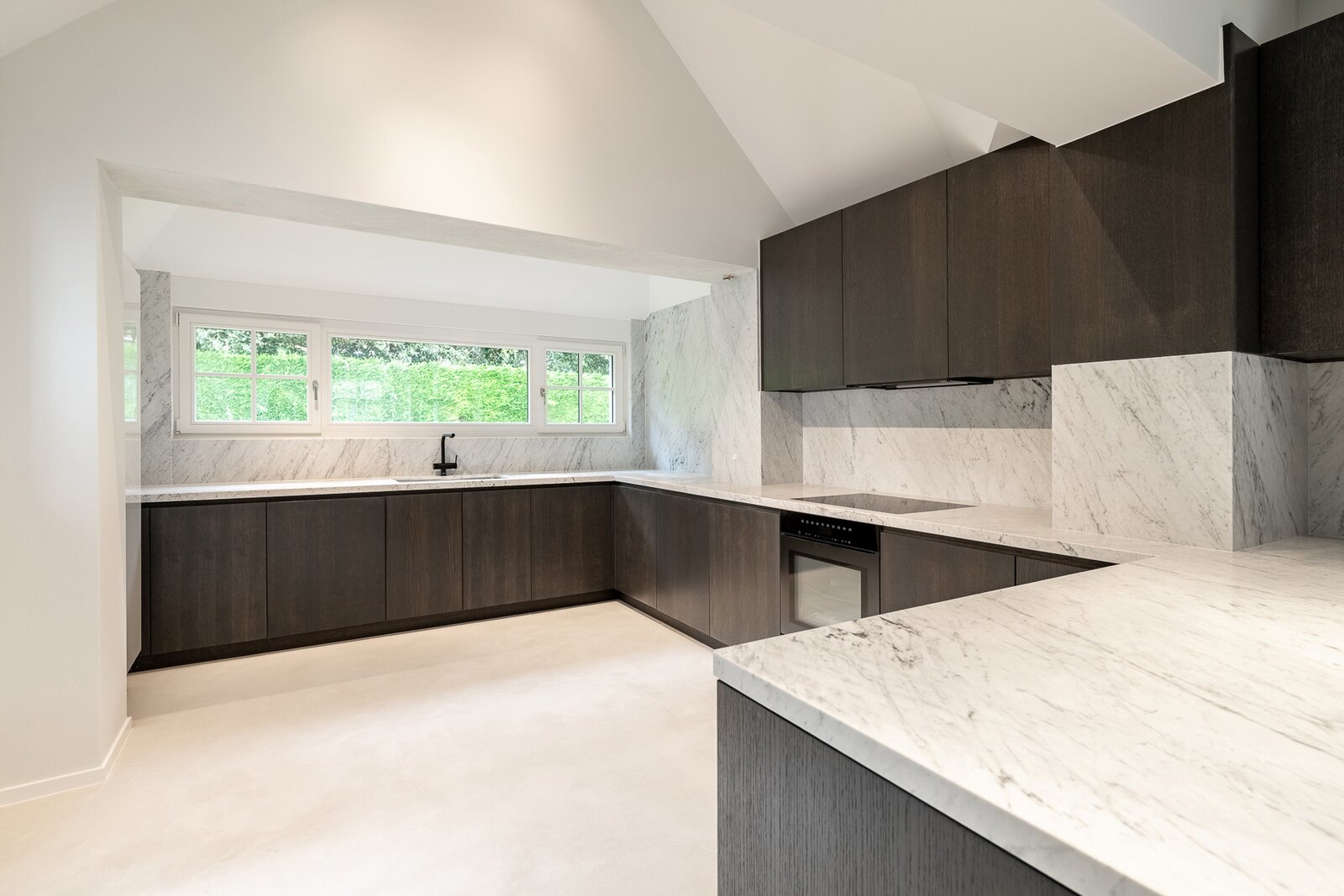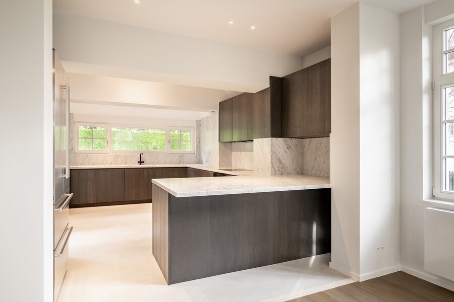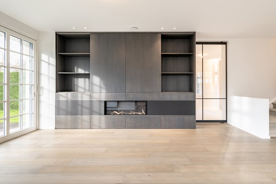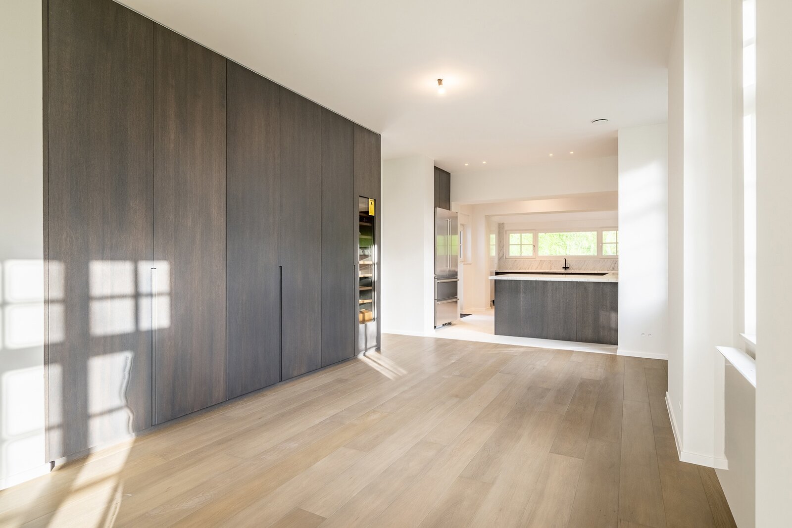 Indeling: inkom met ruime inloopvestiaire, gastentoilet, woonkamer met gashaard, eetplaats met volledige kastenwand en wijnkoeler, volledig geëquipeerde open keuken, aparte bureau of tv-hoek.