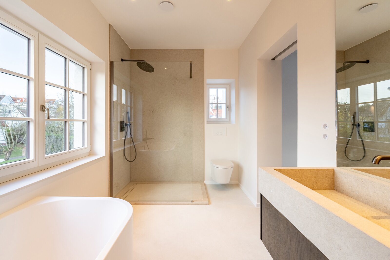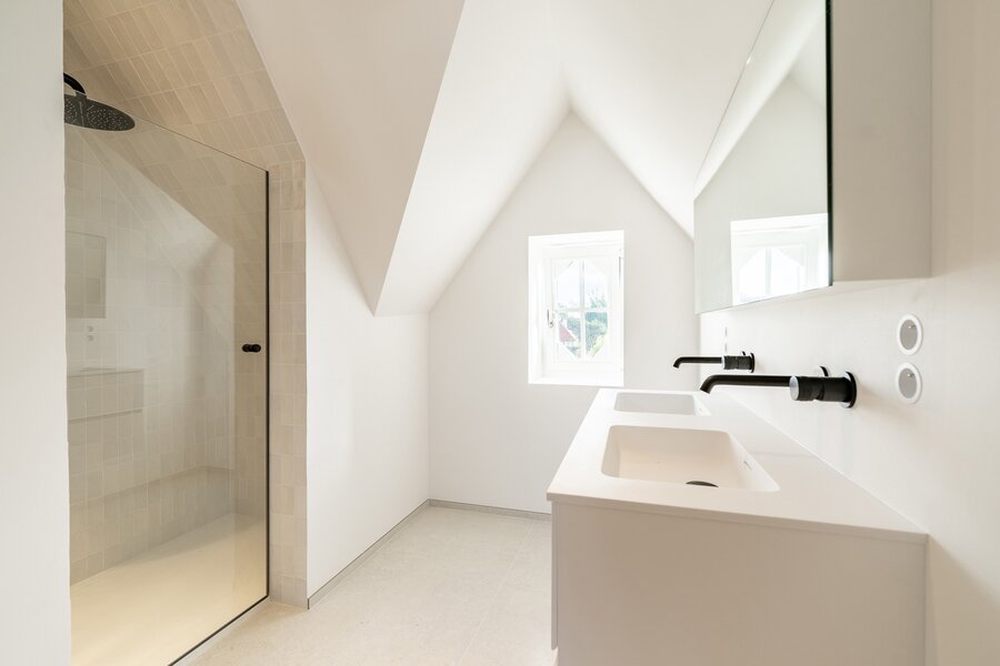 Op de 2de verdieping: 4de slaapkamer met een eigen douchekamer, twee extra kamers met een gedeelde badkamer.