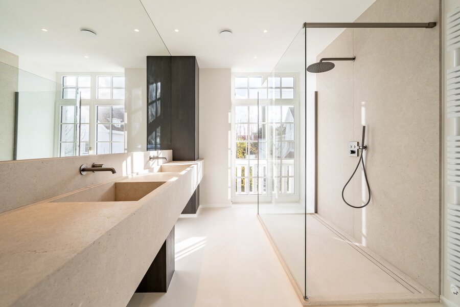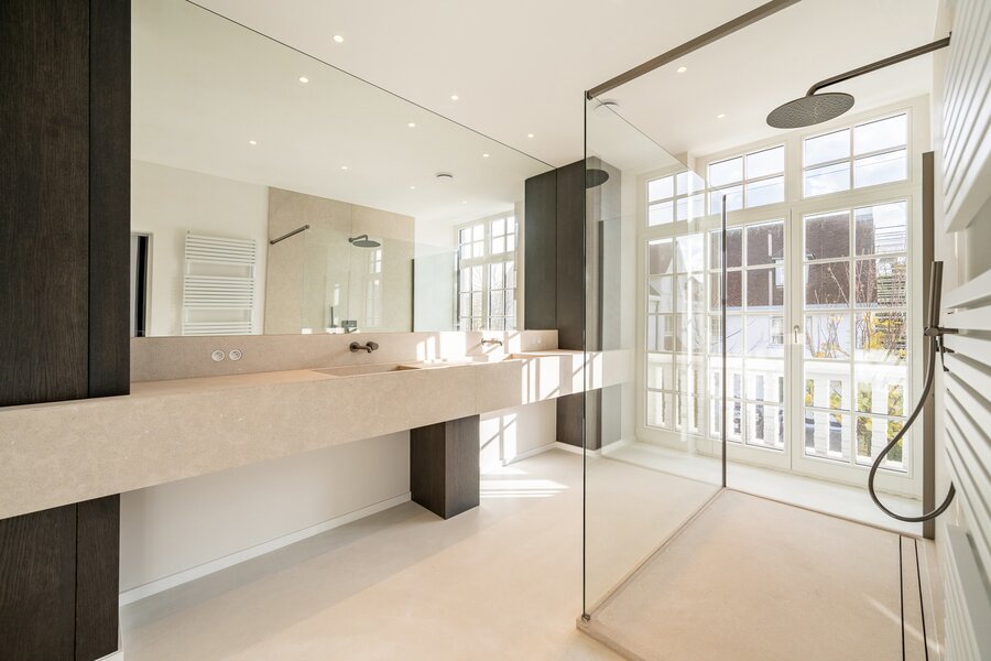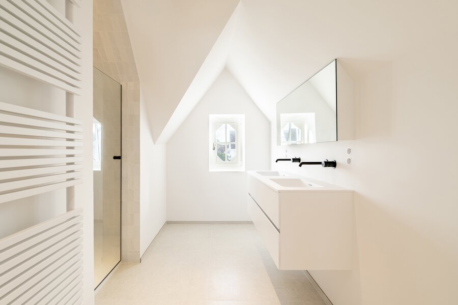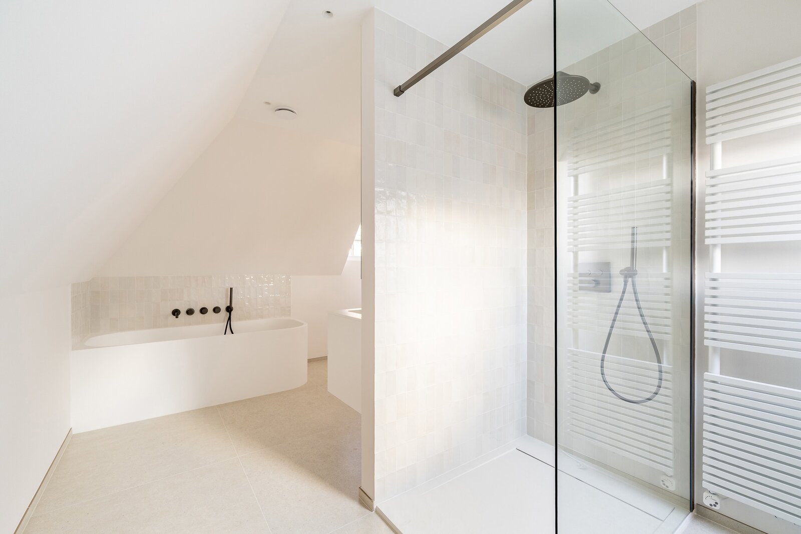 Op de 1ste verdieping zijn er 3 zeer ruime slaapkamers, elk voorzien van ingemaakte kasten en een eigen bad- of douchekamer.
