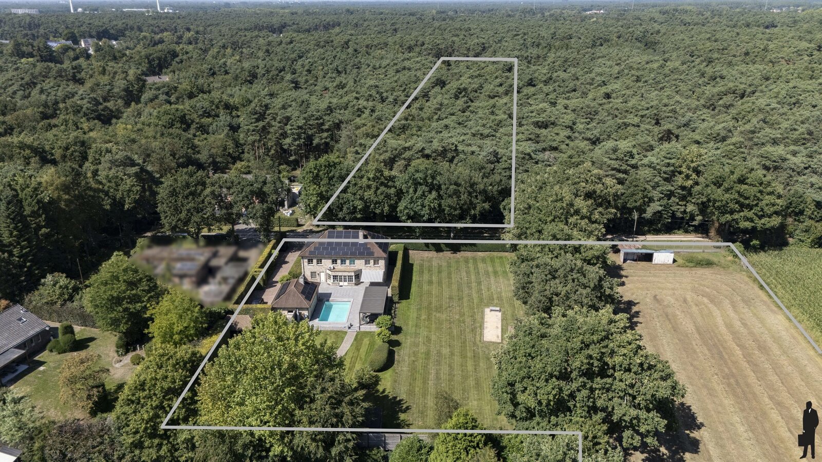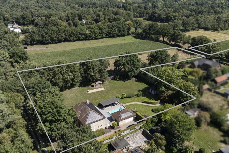 Recente, lichtrijke klassevilla op één van de mooiste locaties te Mol, nabij Postel en de Nederlandse grens. Het riante landhuis bevindt zich op een prachtig domein van in totaal ca. 2 ha met aangrenzend (eigen) bos- en landbouwgebied en biedt o.a. 3 slaapkamers (mogelijkheid tot 4 of meer), 2 badkamers, zwembad met recent poolhouse en ruime garage waarin meerdere wagens kunnen worden ondergebracht. Het tot in de puntjes onderhouden domein is fraai aangelegd met uitzonderlijk hoge hagen, weloverdachte schaduw- en zonneterrassen, een eigen petanquebaan en een slim beregeningssysteem. De naastliggende bouwgrond (die behoort tot het domein) is momenteel onbebouwd maar biedt mogelijkheden tot uitbreiding en/of omvorming tot parktuin. De woning zelf is landelijk en luxueus ingericht en volledig up-to-date afgewerkt zowel qua technologie als op vlak van energie-efficiëntie (77 zonnepanelen, warmtepompen, etc.). EPC-score van 173 kWh/m²/jaar (energielabel B), maar dit is nog exclusief de recent geplaatste zonnepanelen. Nabij natuur, recreatie (o.a. golf) en bovendien slechts op enkele autominuten van de Nederlandse grens en de verbinding Geel - Pelt (richting Nederlands Limburg - N71).