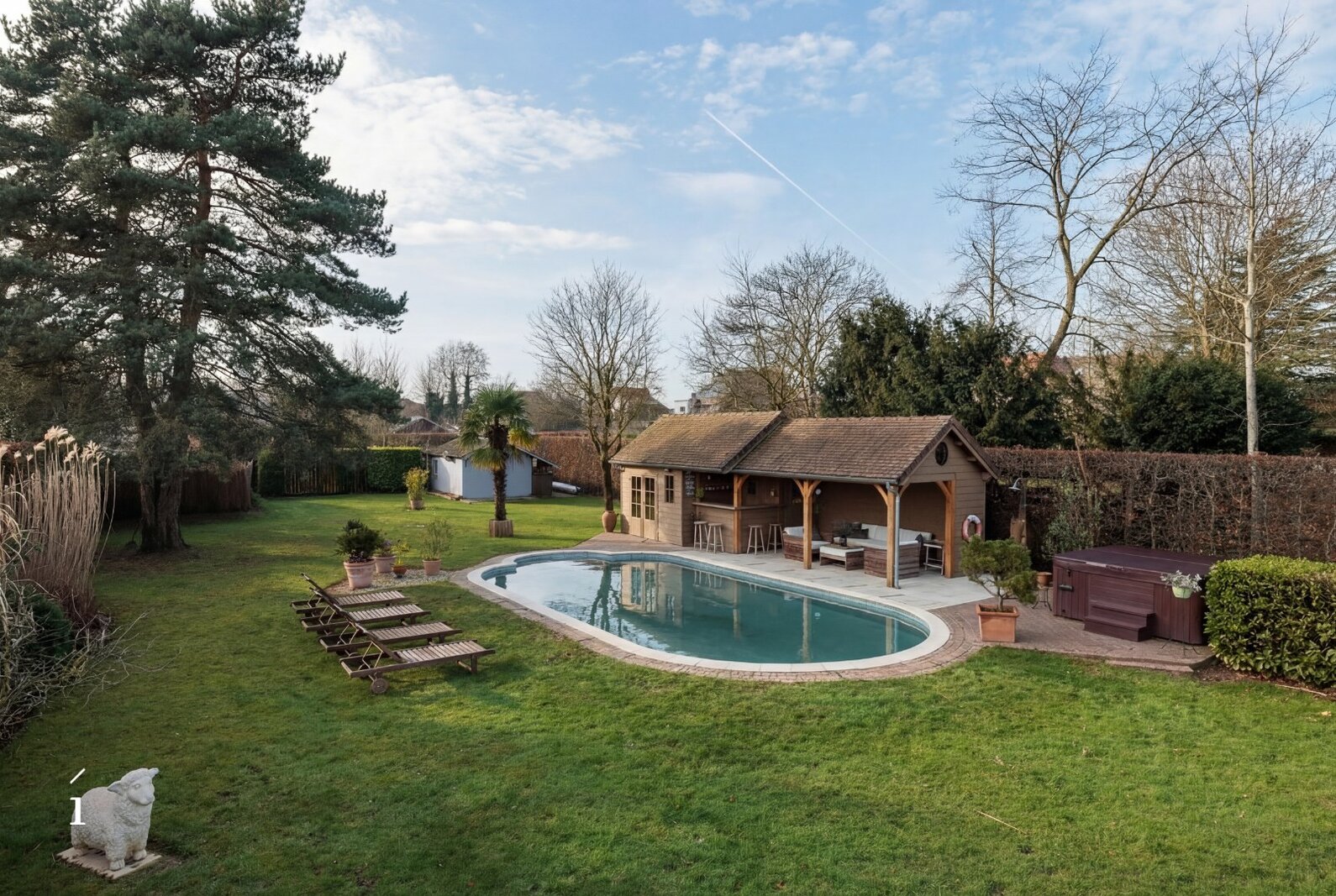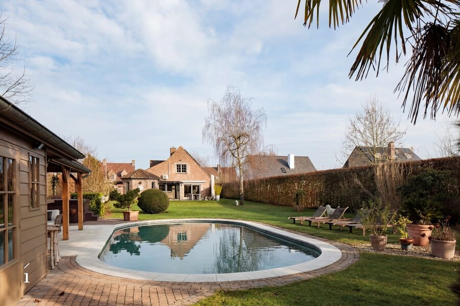 Het buitengebeuren wordt vervolledigd met een zwembad van 5 x 10 m, een poolhouse, een jacuzzi en een tuinhuis, ideaal voor wie het buitenleven weet te appreciëren.