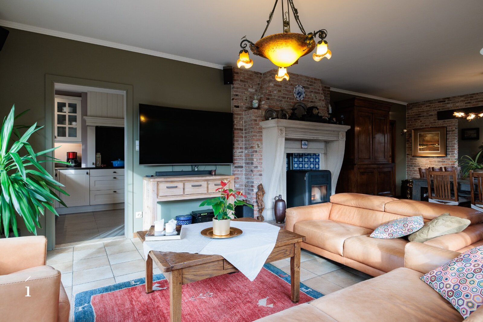 Op het gelijkvloers verwelkomt de inkomhal u in een ruime en lichtrijke leefruimte met pelletkachel, waar het open bureau naadloos aansluit en zorgt voor een aangename werk- en leefomgeving. De vernieuwde keuken sluit praktisch aan op de garage en wordt aangevuld met een polyvalente ruimte en veranda. Verder zijn er drie volwaardige slaapkamers, een hobbykamer, een badkamer en een bijkomende bergruimte.