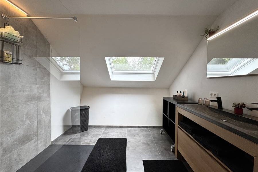 Het nachtgedeelte omvat drie ruime slaapkamers, waarvan twee en suite, evenals een stijlvolle badkamer. Een grote wasruimte vervolledigt de functionele indeling van het huis.