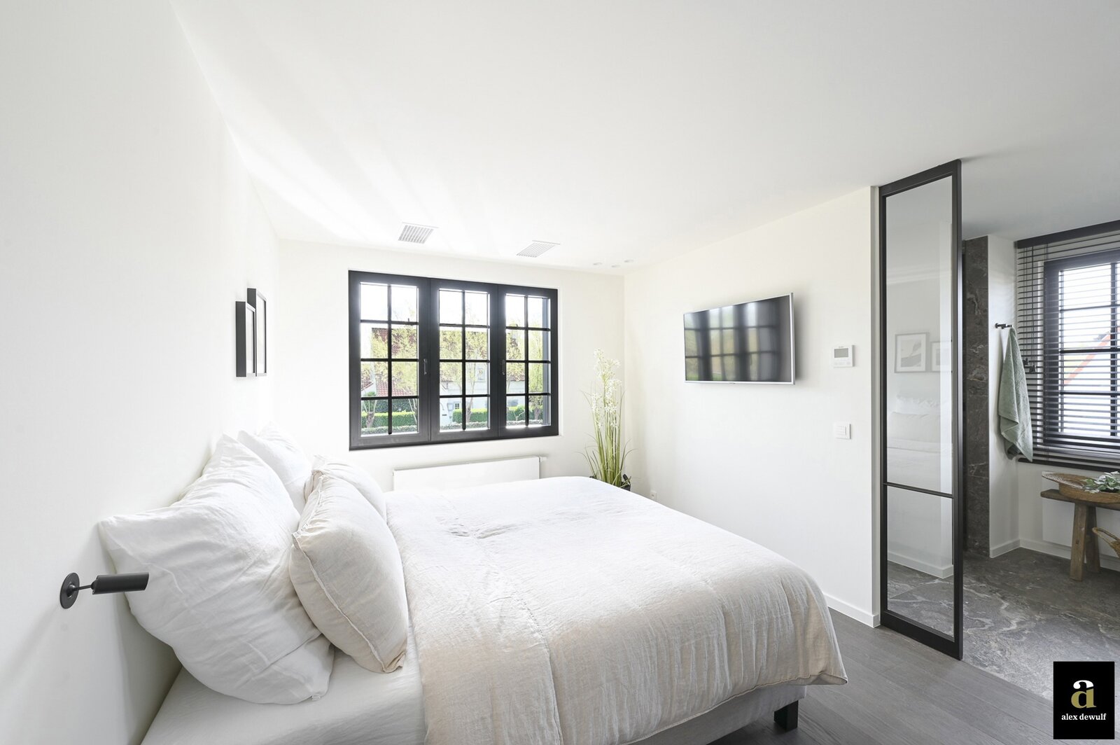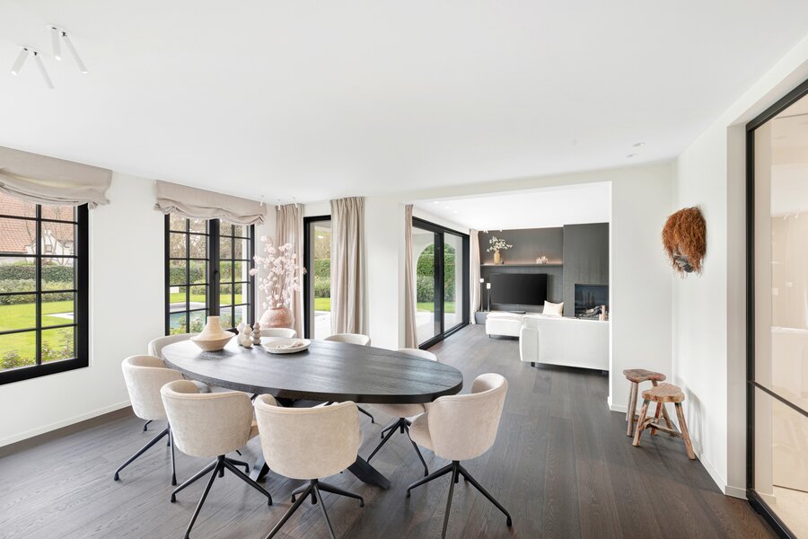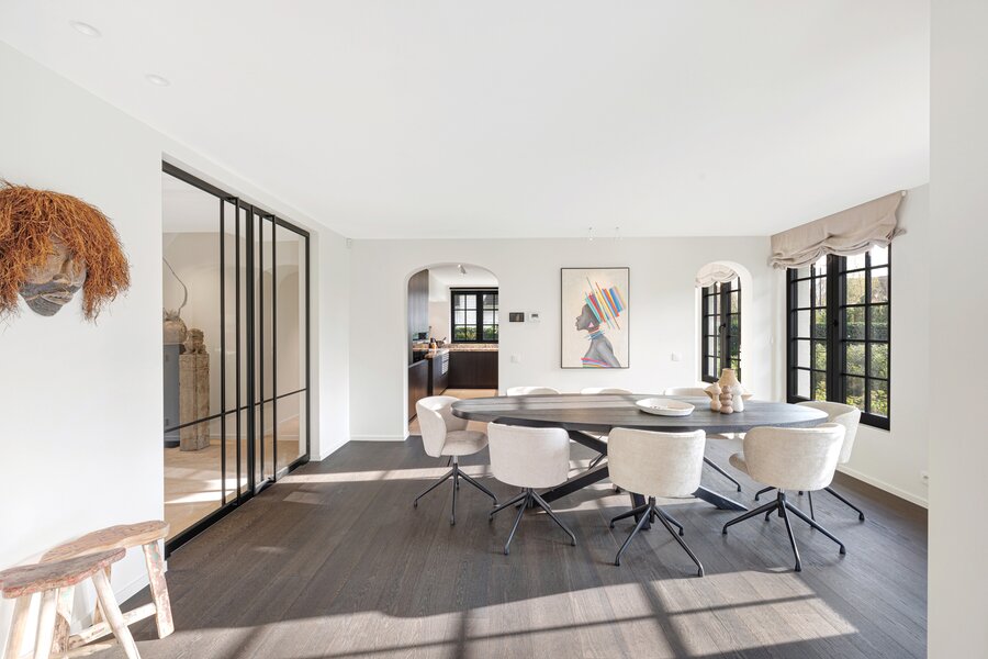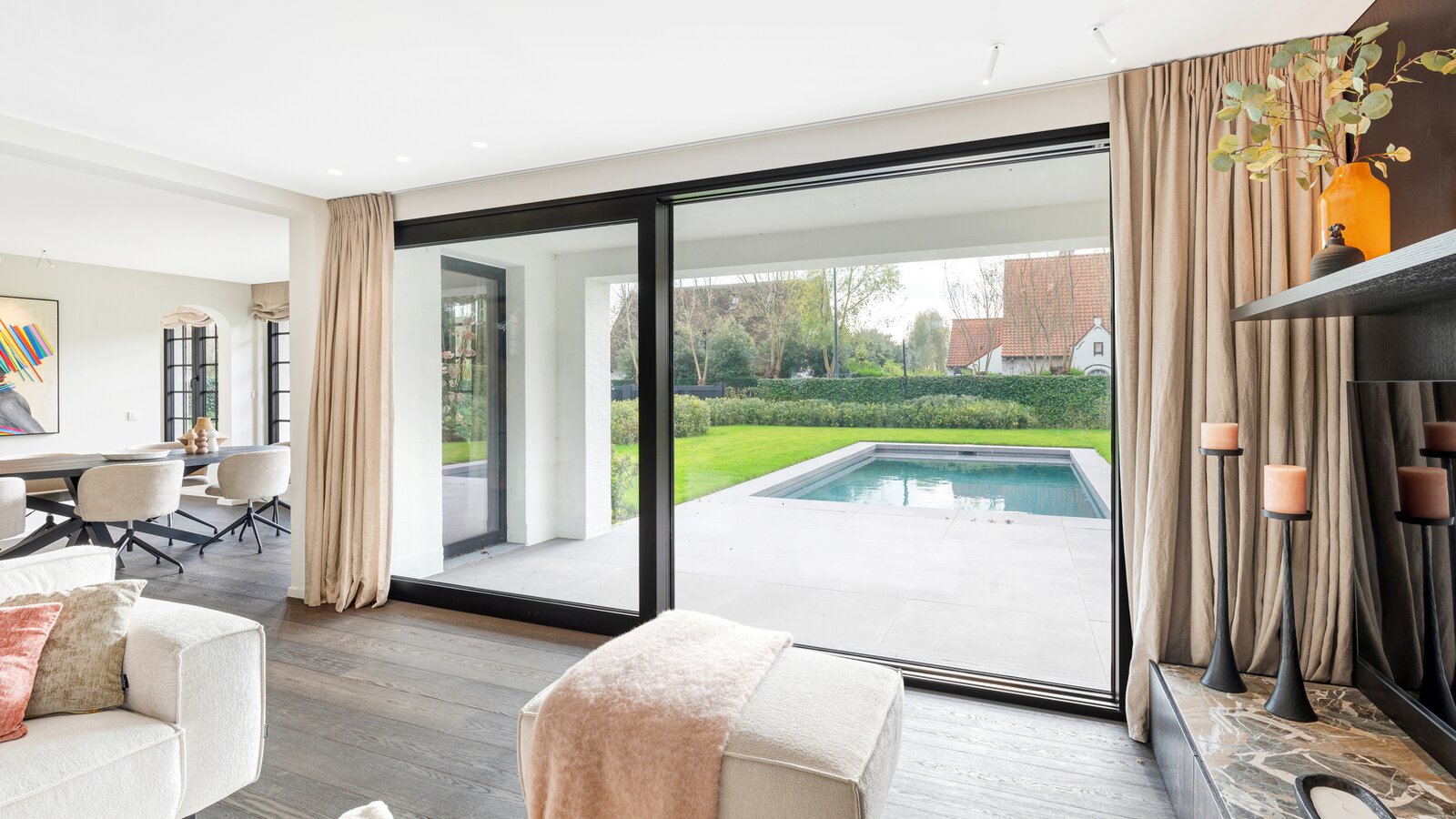 De villa werd volledig gestript en met hoogwaardige materialen vernieuwd. Ze biedt een uitzonderlijk wooncomfort met onder meer 6 slaapkamers, 5 badkamers en een zuidgerichte tuin met verwarmd zwembad. Dankzij de automatische toegangspoort bereikt u de ruime oprit met plaats voor vier wagens. Er is ook een inpandige garage.