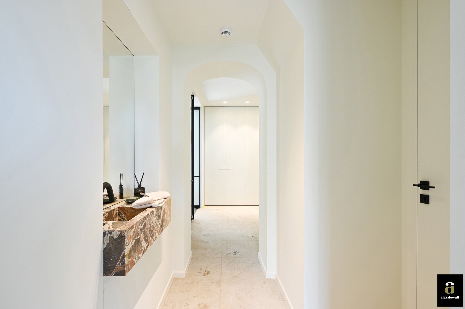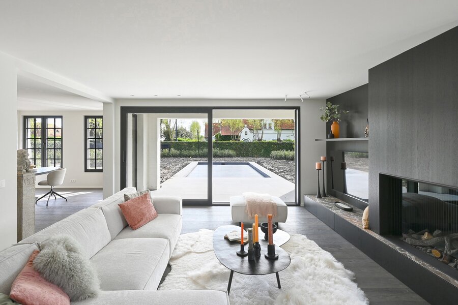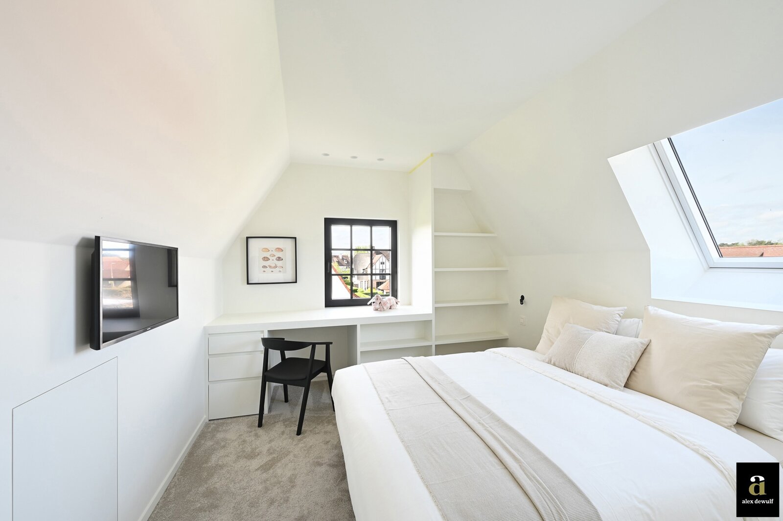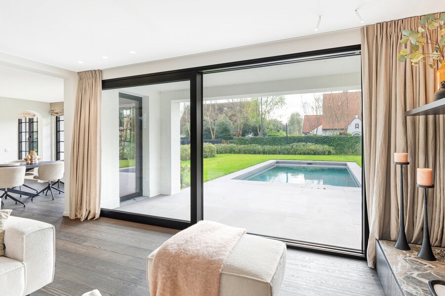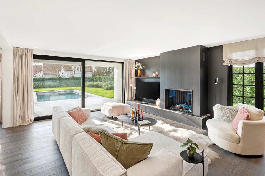 De villa werd volledig gestript en met hoogwaardige materialen vernieuwd. Ze biedt een uitzonderlijk wooncomfort met onder meer 6 slaapkamers, 5 badkamers en een zuidgerichte tuin met verwarmd zwembad. Dankzij de automatische toegangspoort bereikt u de ruime oprit met plaats voor vier wagens. Er is ook een inpandige garage.