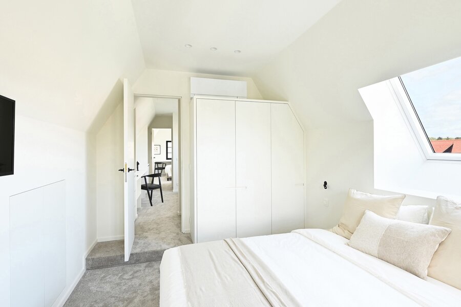 Op de eerste verdieping bevinden zich vier volwaardige slaapkamers, elk met ingebouwde kasten en een eigen badkamer of douchekamer. De tweede verdieping telt nog twee ruime slaapkamers, een douchekamer en een apart toilet op de nachthal.