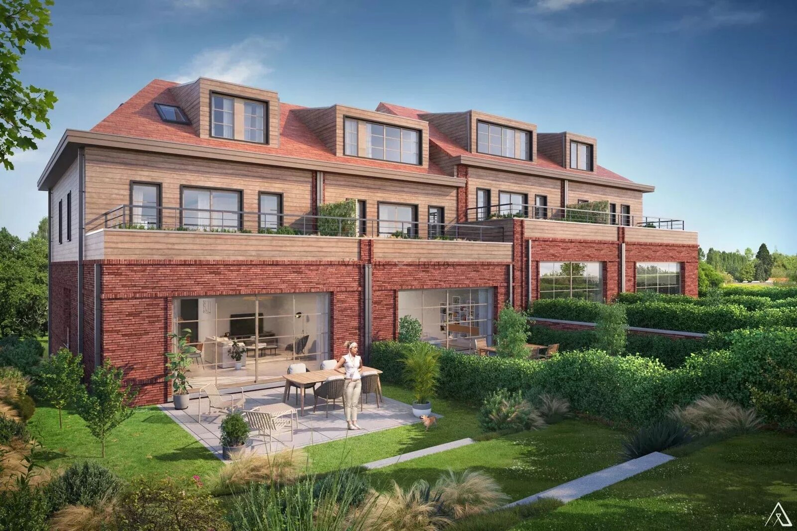 Deze vier woningen, ontworpen in BEL-ÉTAGE-stijl, zullen elk een oppervlakte van ongeveer 300 m² bieden. Ze zullen ruime leefruimtes, twee terrassen, een tuin en vier slaapkamers omvatten. Een garage grenst aan de ingang, aangevuld met een parkeerplaats ervoor, wat extra comfort garandeert. De kelder en de ketelruimte bevinden zich aan de tuinkant, op hetzelfde niveau.
