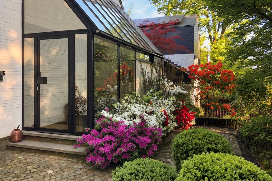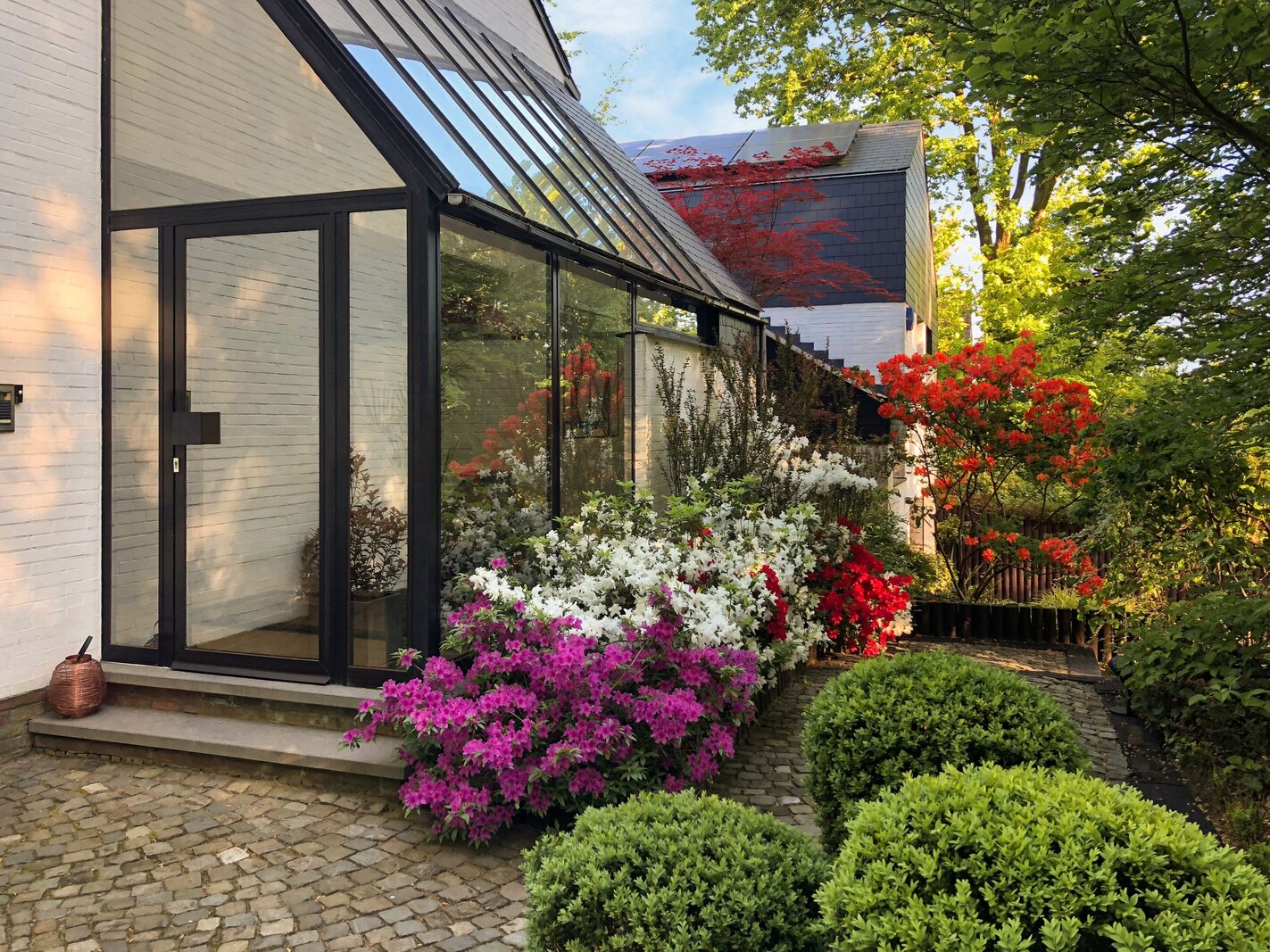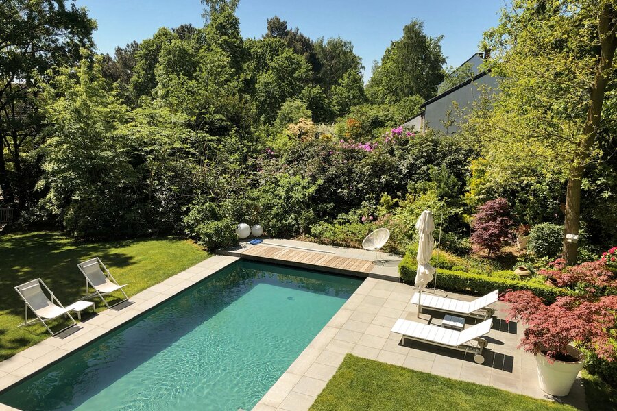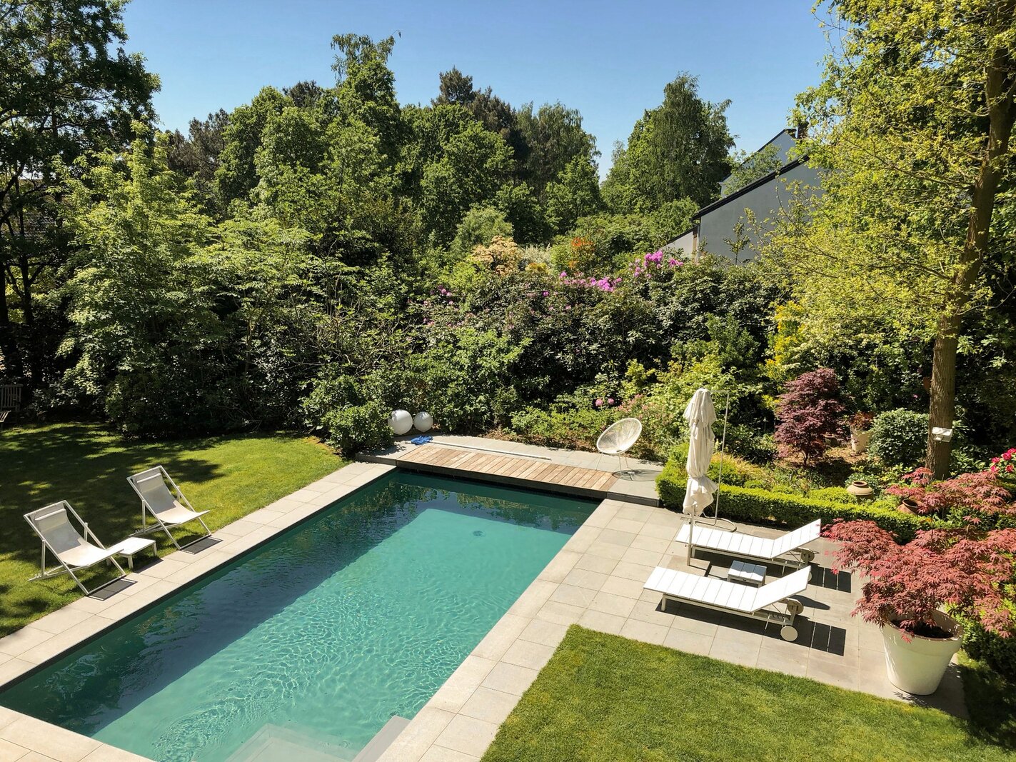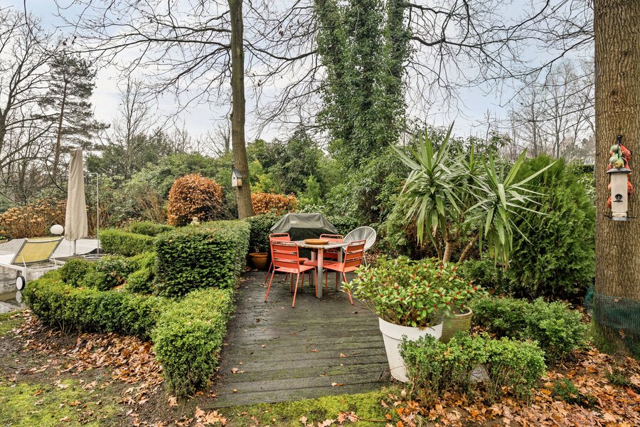 De zuidwest georiënteerde tuin biedt o.a een zwembad met volledige privacy en een volwassen beplanting