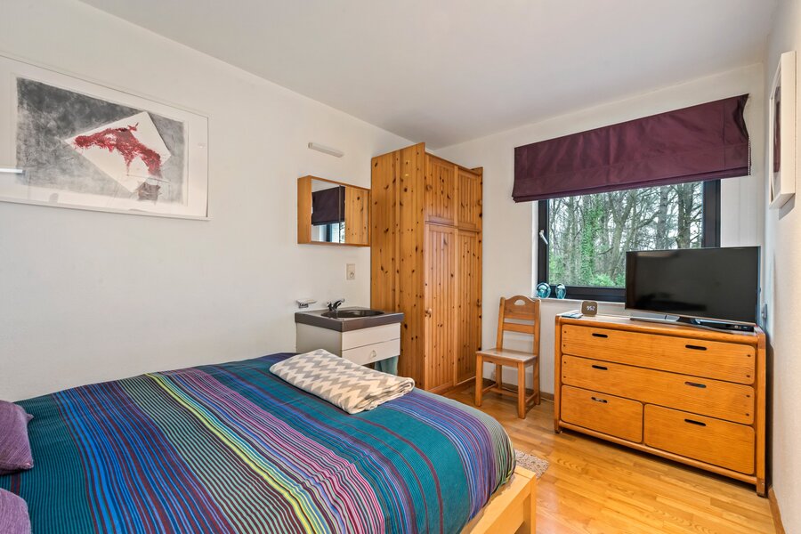 Via een sas komt men enerzijds bij een doucheruimte en een wasplaats en anderzijds bij de nachthal met 4 slaapkamers en een badkamer en afzonderlijk toilet.