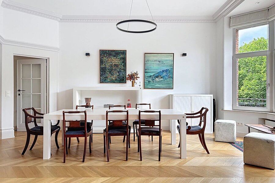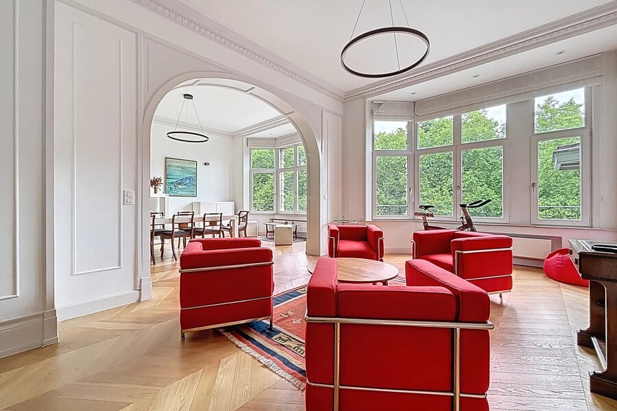 Barnes biedt exclusief dit prachtige appartement aan in een prestigieus gebouw uit 1925 dat op de monumentenlijst staat. Met uitzicht op de Abdij van La Cambre baden de grote woonkamers in het licht dankzij de twee boogramen. Stijlkenmerken zoals schouwen, mooi lijstwerk en parketvloeren zijn bewaard gebleven, wat dit prachtige pand een elegant cachet geeft. De flat is in 2020 uitgebreid gerenoveerd en heeft 2/3 slaapkamers en drie badkamers of doucheruimtes.
