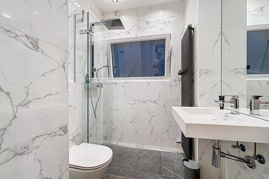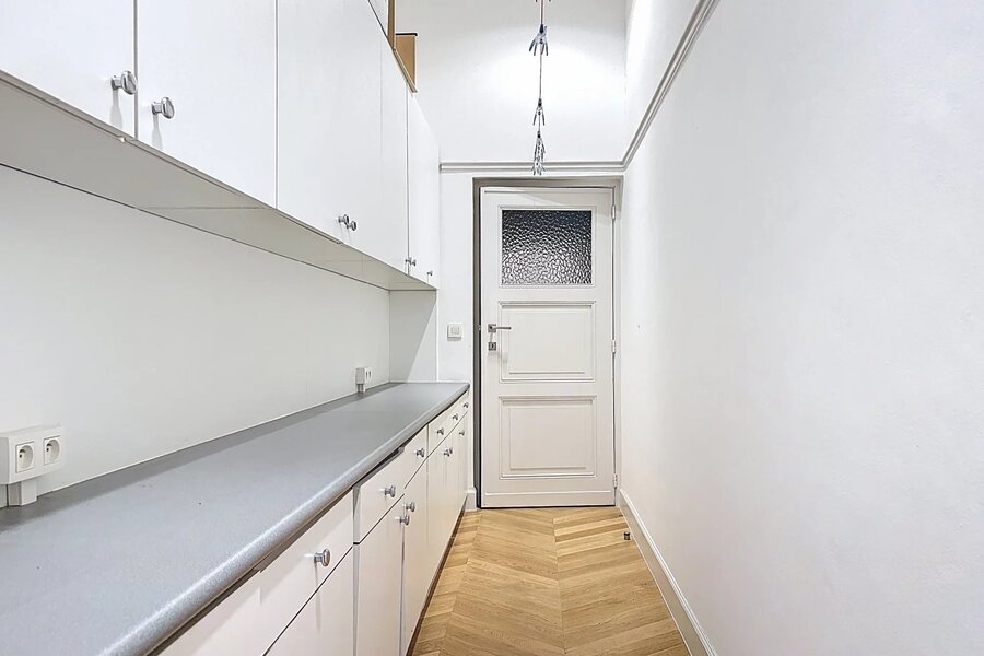 Er is ook een keuken, een bijkeuken en een wasruimte, evenals een klein balkon op een kleine binnenplaats.