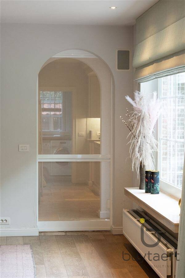 Binnenkomend wordt u verwelkomd in een elegante inkomhal met gastentoilet, vestiaire en bergruimte onder trap.