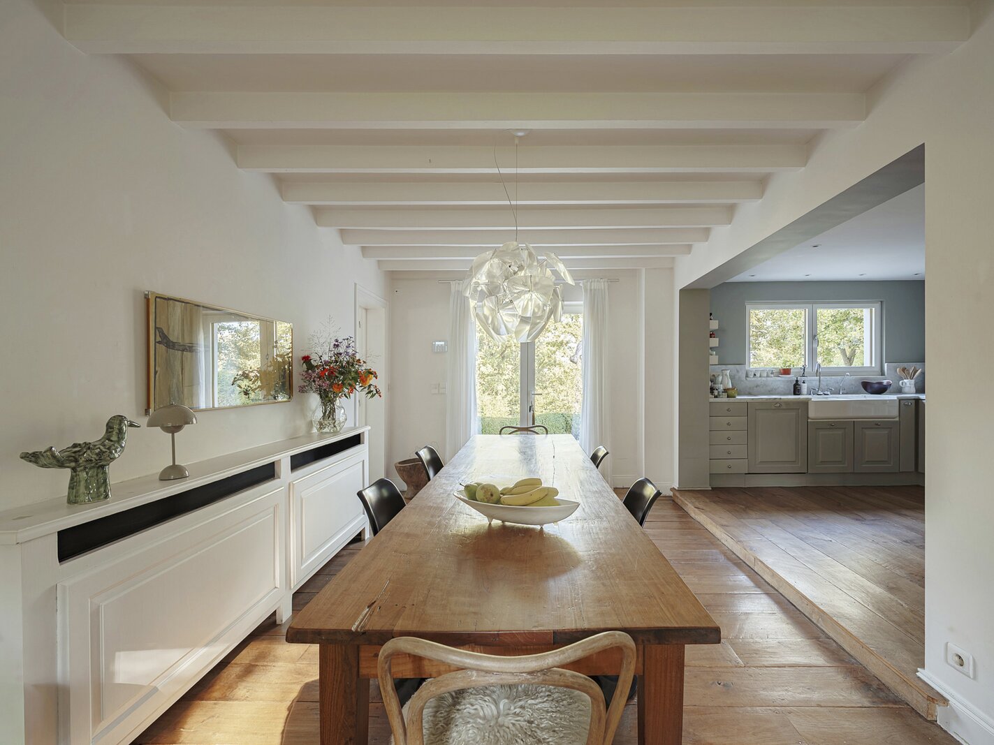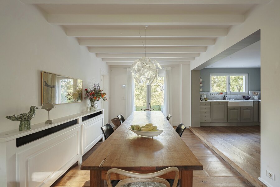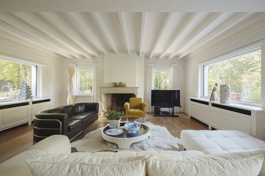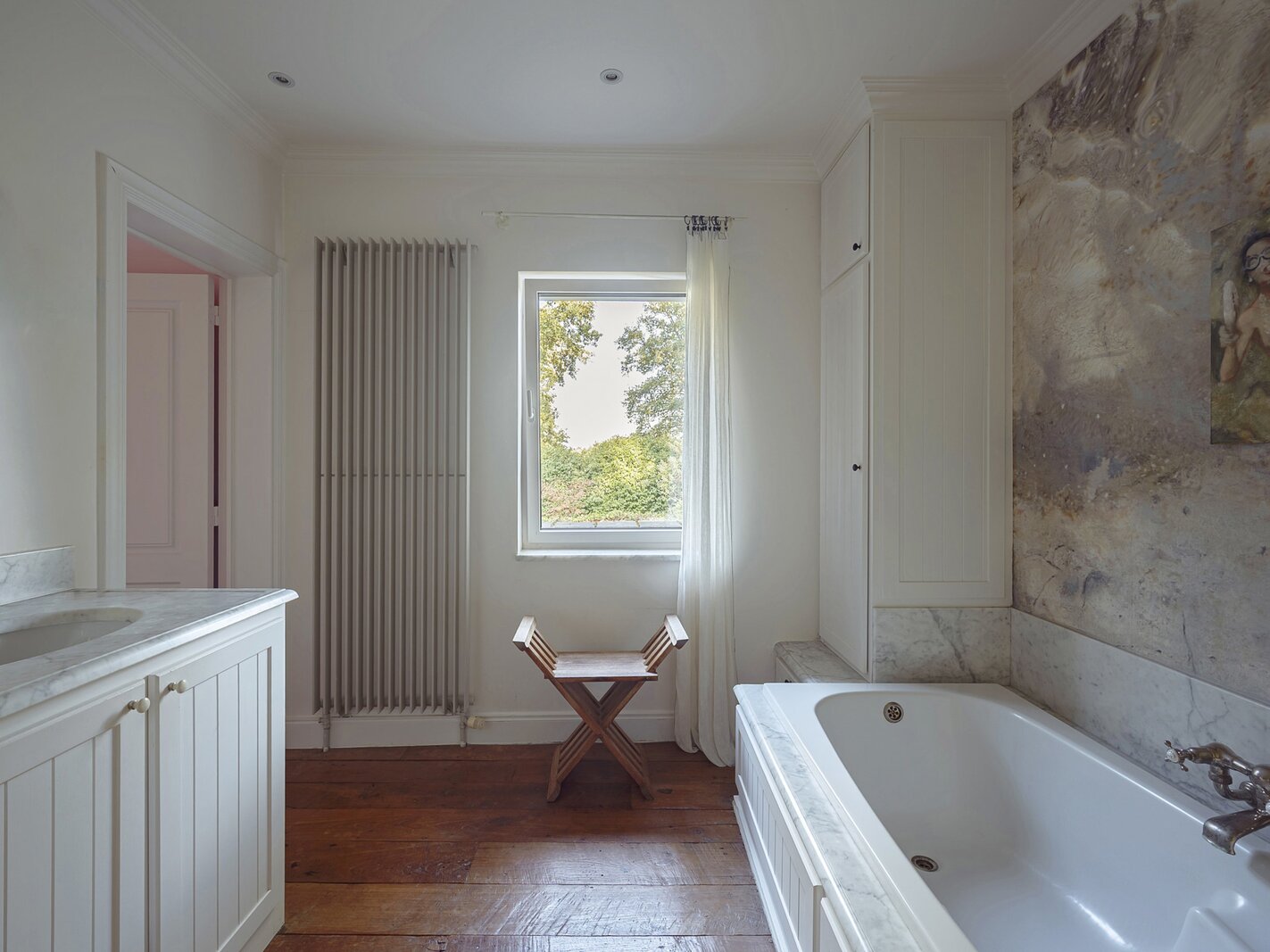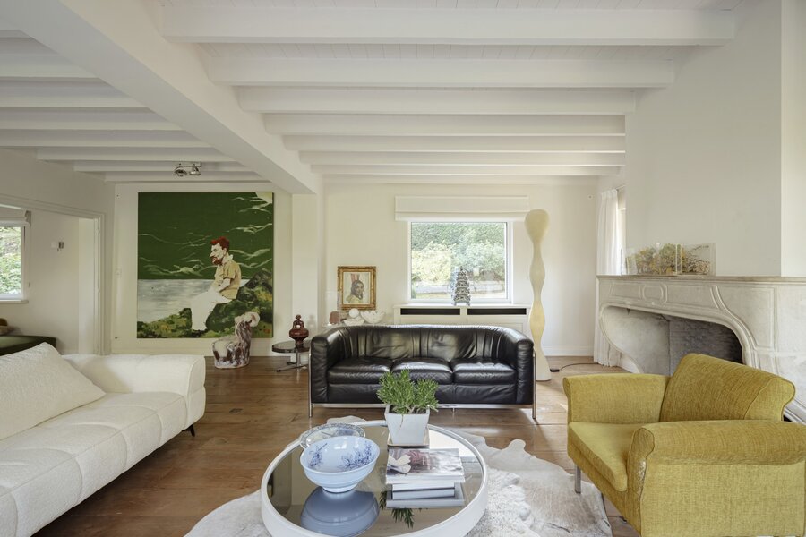 Het gelijkvloers is ingedeeld rond een elegante inkomhal. Aan de ene zijde bevindt zich een bureau-bibliotheek met open haard, ideaal voor wie rust en concentratie zoekt. Aan de andere zijde komt u in de leefruimte terecht, bestaande uit een salon met open haard, een gezellige eetkamer en een volledig uitgeruste keuken met ruim fornuis met meerdere branders en ovens, een ware troef voor fijnproevers. Het geheel wordt aangevuld met een bijkeuken/wasruimte met dienstingang. Het slaapgedeelte omvat op het gelijkvloers een master suite, een gezellige cocon met op maat gemaakte dressing en en-suite badkamer. Op de verdieping bevinden zich drie bijkomende slaapkamers en een aparte badkamer. Buiten bevindt zich een carport voor twee wagens, voorzien van een laadpaal.