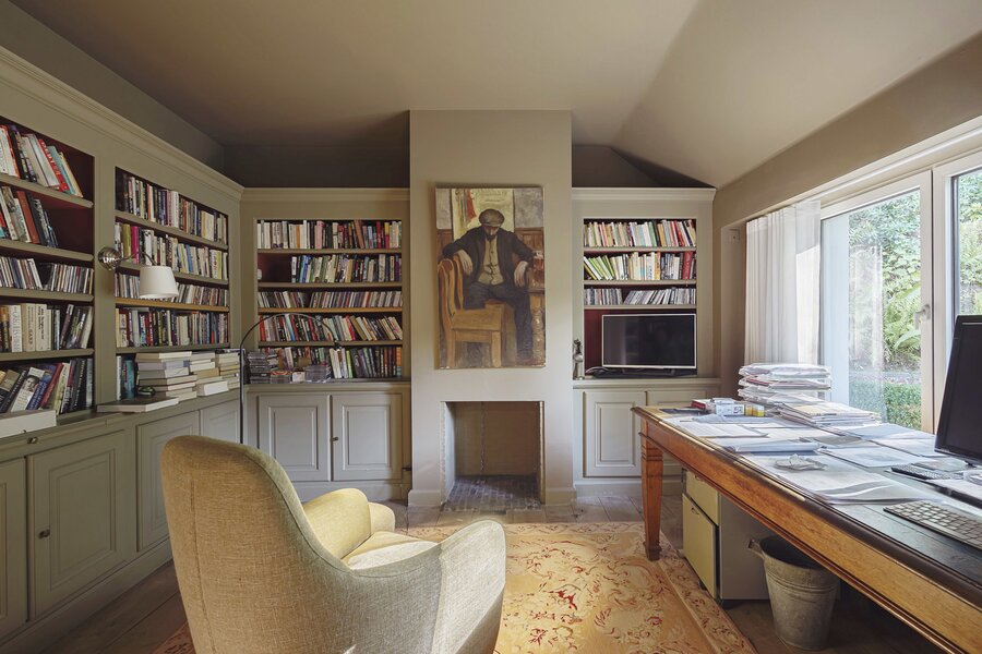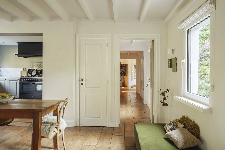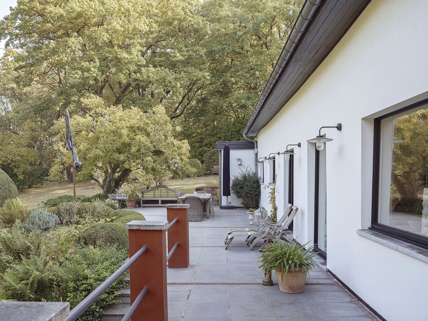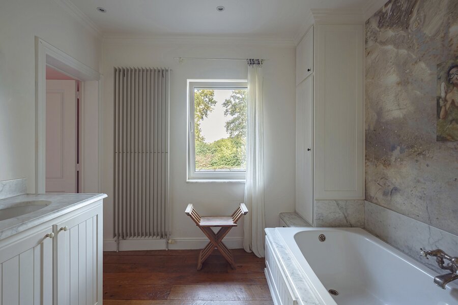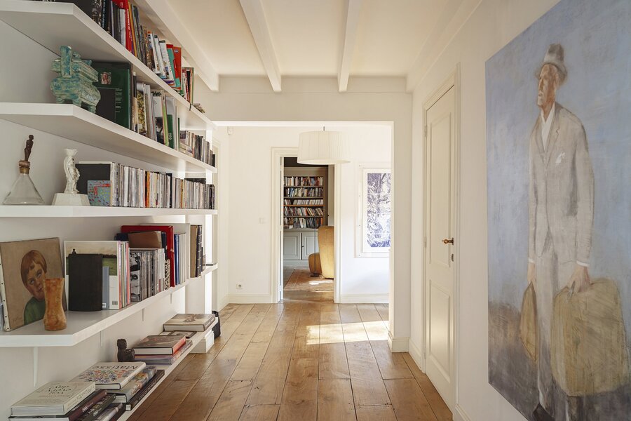 Het gelijkvloers is ingedeeld rond een elegante inkomhal. Aan de ene zijde bevindt zich een bureau-bibliotheek met open haard, ideaal voor wie rust en concentratie zoekt. Aan de andere zijde komt u in de leefruimte terecht, bestaande uit een salon met open haard, een gezellige eetkamer en een volledig uitgeruste keuken met ruim fornuis met meerdere branders en ovens, een ware troef voor fijnproevers. Het geheel wordt aangevuld met een bijkeuken/wasruimte met dienstingang. Het slaapgedeelte omvat op het gelijkvloers een master suite, een gezellige cocon met op maat gemaakte dressing en en-suite badkamer. Op de verdieping bevinden zich drie bijkomende slaapkamers en een aparte badkamer. Buiten bevindt zich een carport voor twee wagens, voorzien van een laadpaal.