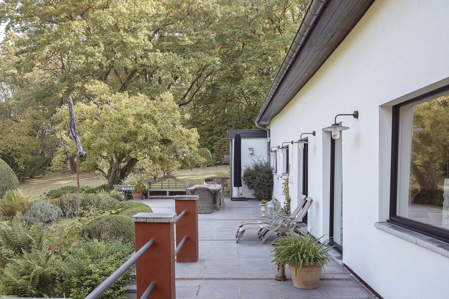 In de prestigieuze wijk van de Golf van Sept Fontaines, verscholen van inkijk, bevindt zich een unieke woning met een bewoonbare oppervlakte van ± 285 m². De woning is gelegen op een prachtig aangelegd en bebost perceel van ± 42 are, voorzien van een verwarmde natuurlijke zwemvijver, waarbij de groene omgeving een integraal onderdeel vormt van het decor. Deze woning, die authentieke charme en modern comfort combineert, werd steeds zorgvuldig onderhouden en onderscheidt zich door haar eclectische en rustgevende sfeer. De authentieke vloeren en balken creëren een warme, familiale plattelandssfeer.