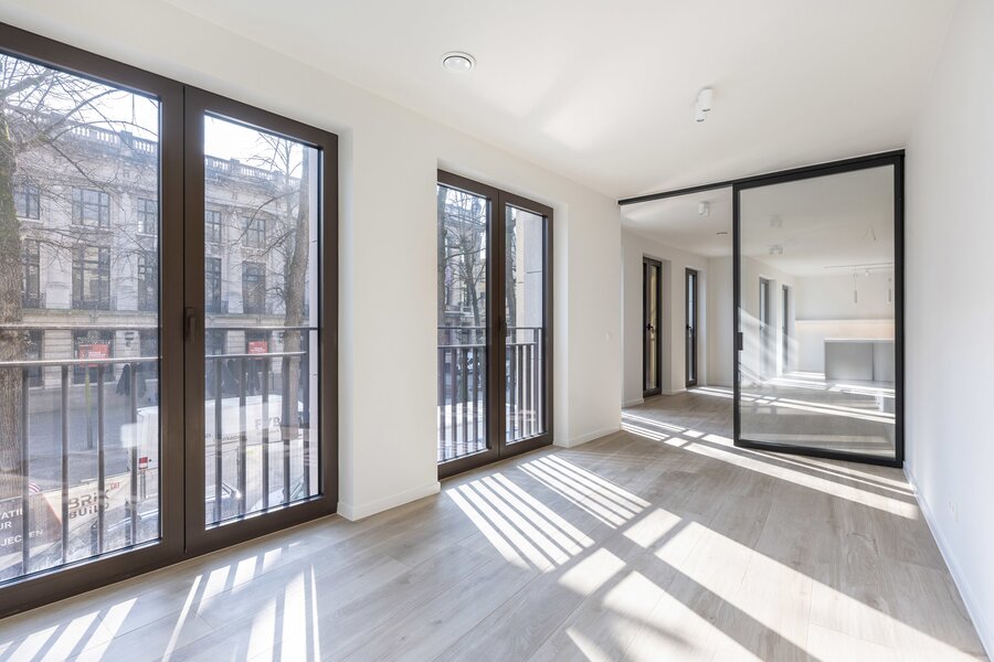 Op de Graanmarkt, een van de mooiste en meest karaktervolle pleinen van Antwerpen, bevindt zich dit ruime appartement in de stijlvolle residentie, ontworpen door Binst Architects. Een bijzondere woonplek waar architectuur, licht en comfort op een heel natuurlijke manier samenkomen.