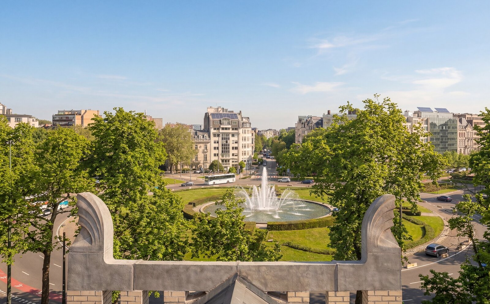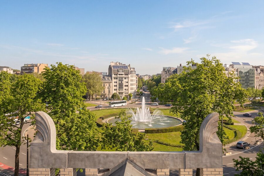 In de onmiddellijke nabijheid van het Montgomeryplein bevindt zich deze volledig gerenoveerde duplex penthouse met een bruto oppervlakte van circa 283 m² (EPC B), gelegen op de 3de en 4de verdieping van een gebouw met privatieve lift. Het appartement beschikt over drie slaapkamers, drie badkamers en een terras van 21 m² met zuidwestelijke oriëntatie.