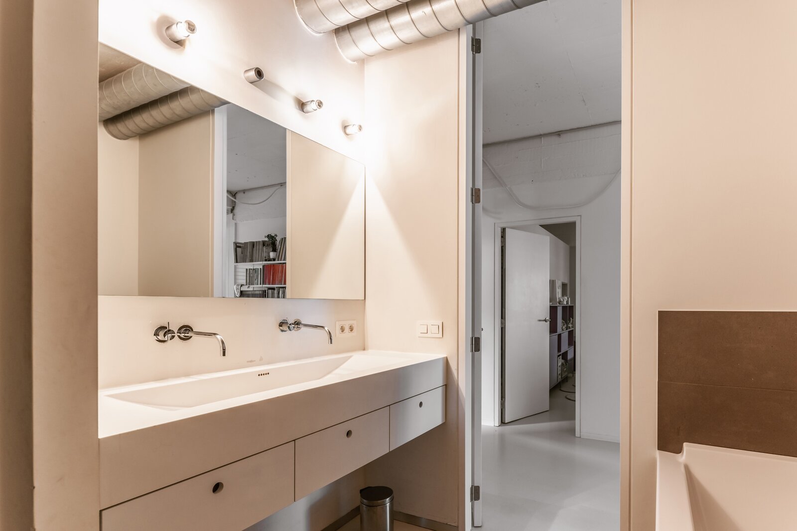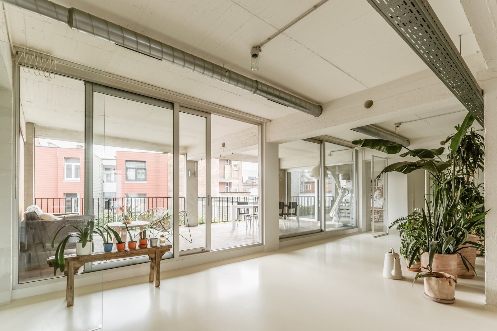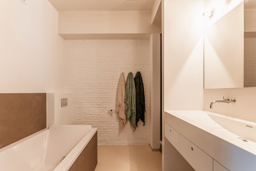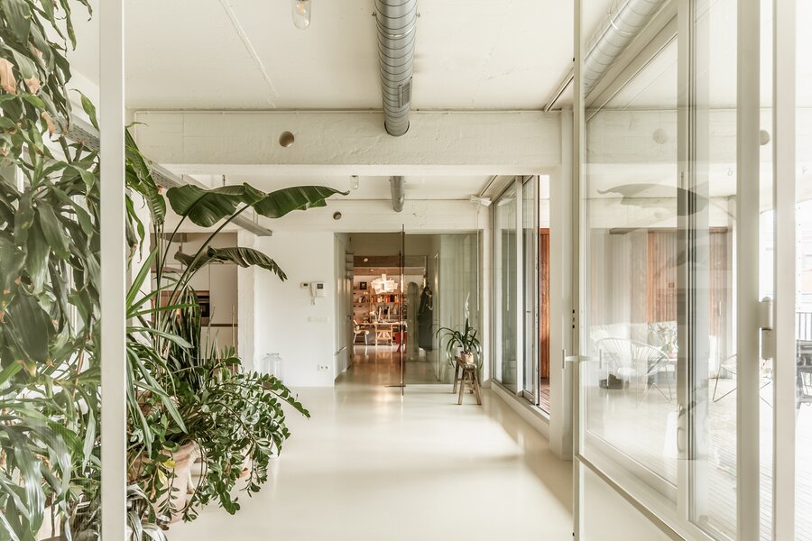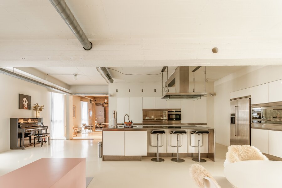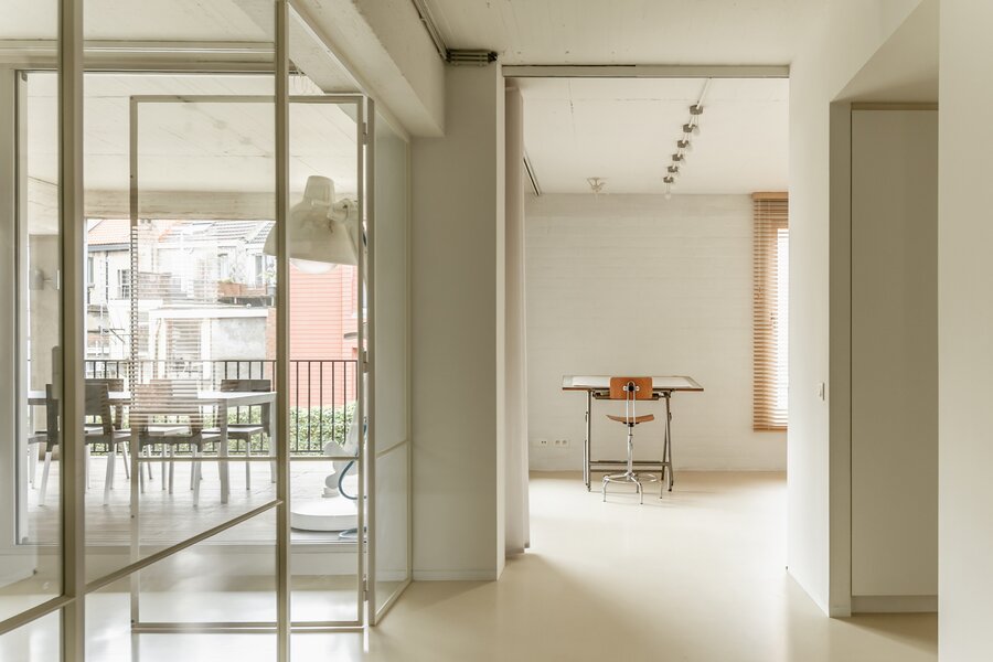 Fantastische open volumes, ruw beton, naadloze gietvloeren en zo’n 234 m² bewoonbare oppervlakte in een organische flow – dit sublieme appartement bevindt zich op de tweede verdieping van een tijdloos gebouw met lift en trap. Dit appartement maakt momenteel deel uit van een nog grotere loft, bestaande uit twee samengevoegde appartementen. Dankzij de aparte voordeur en het gescheiden verwarmingssysteem kunnen ze eenvoudig opgesplitst worden.
