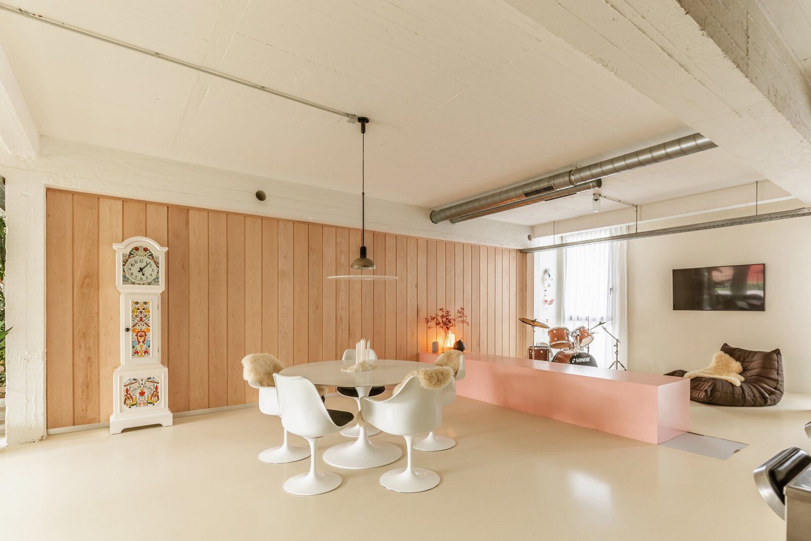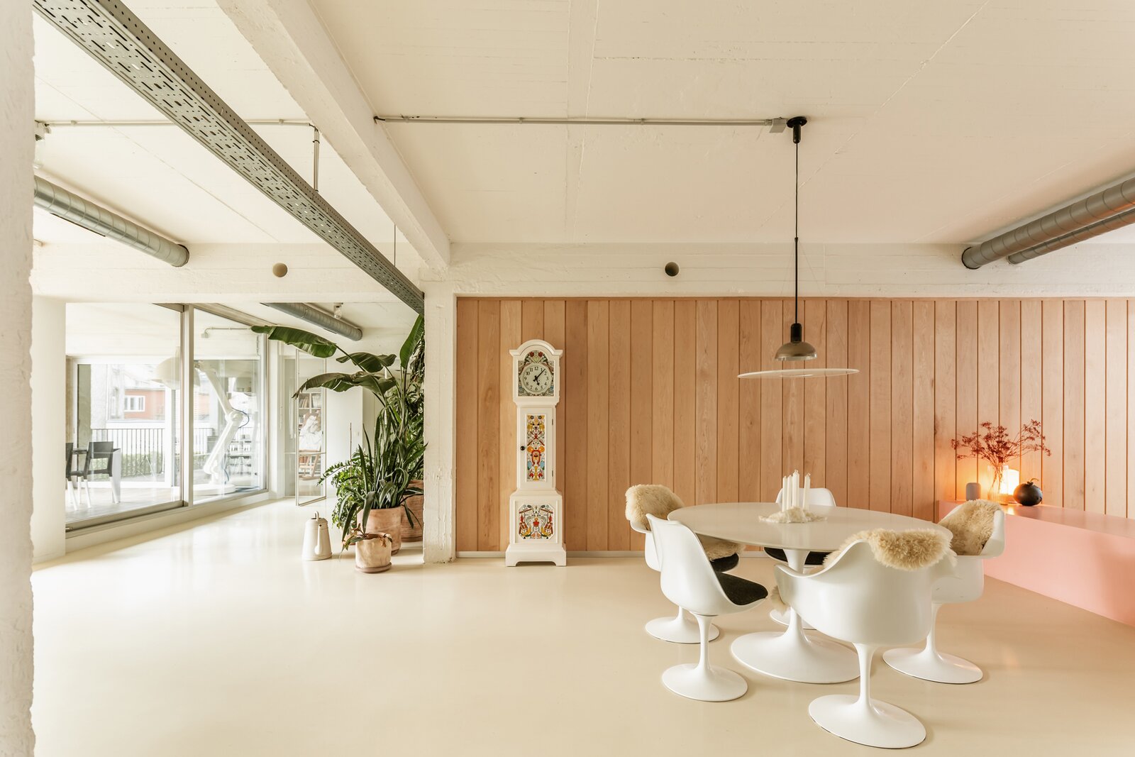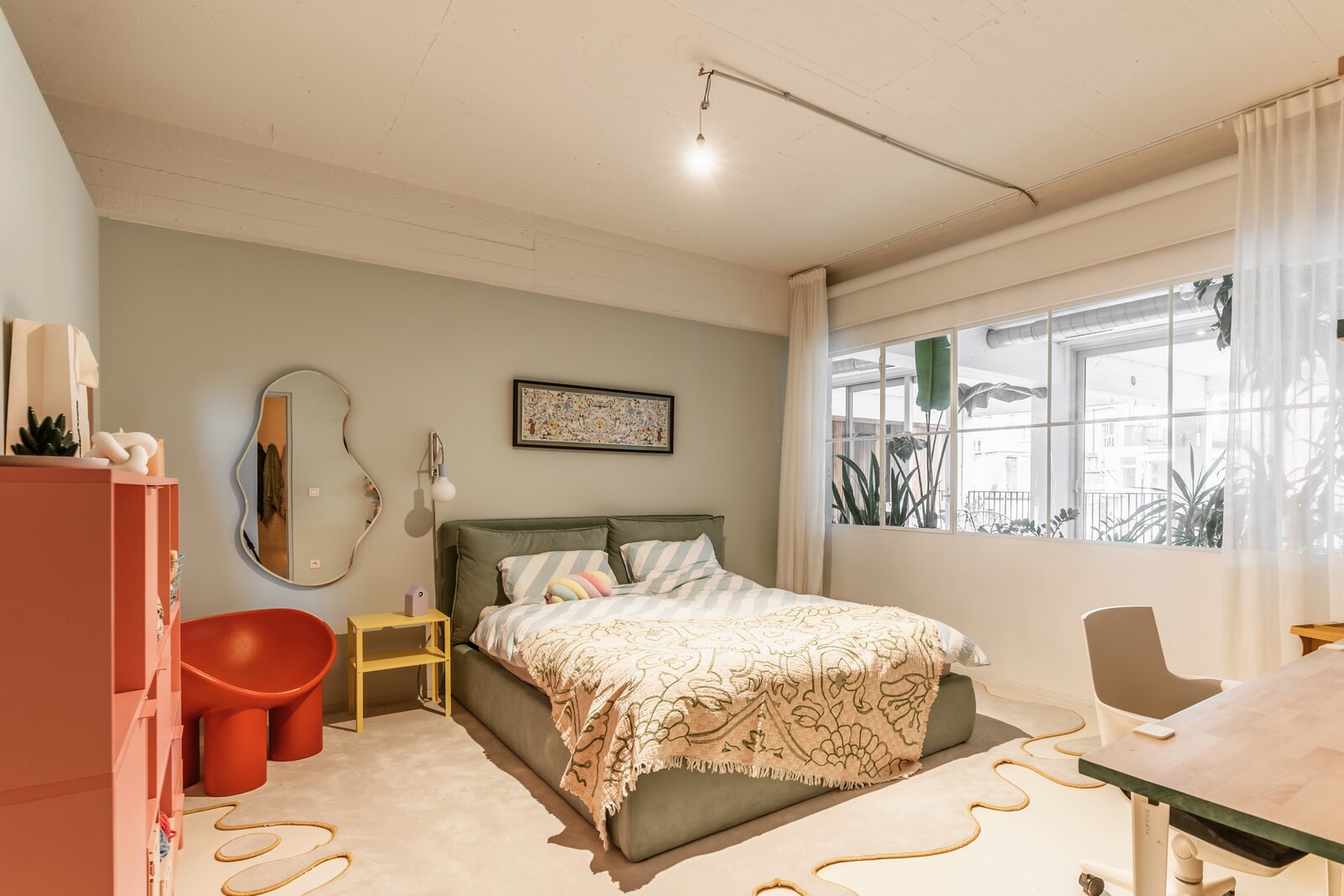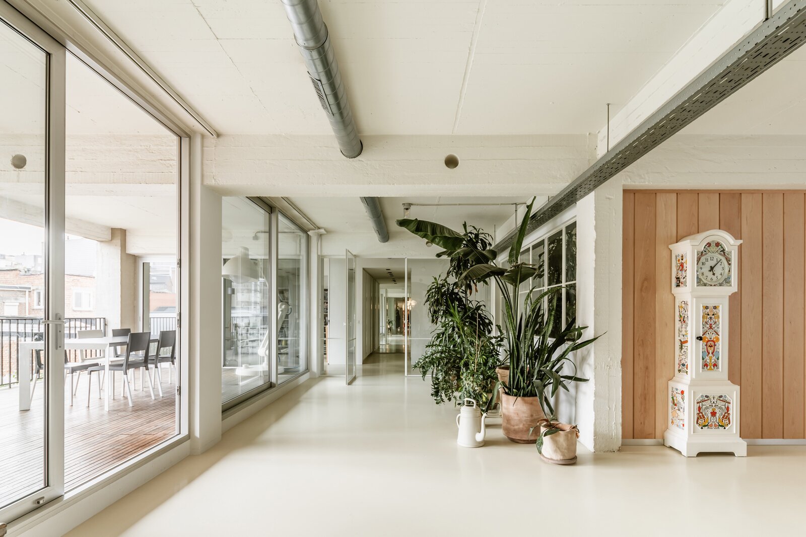 Fantastische open volumes, ruw beton, naadloze gietvloeren en zo’n 234 m² bewoonbare oppervlakte in een organische flow – dit sublieme appartement bevindt zich op de tweede verdieping van een tijdloos gebouw met lift en trap. Dit appartement maakt momenteel deel uit van een nog grotere loft, bestaande uit twee samengevoegde appartementen. Dankzij de aparte voordeur en het gescheiden verwarmingssysteem kunnen ze eenvoudig opgesplitst worden.