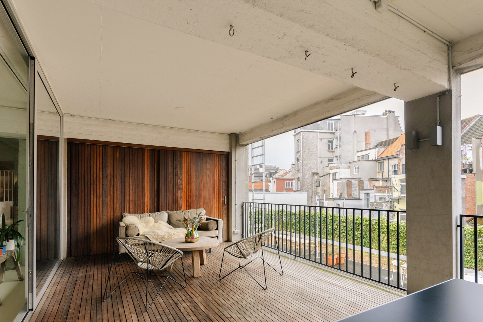Twintig jaar geleden lieten de huidige eigenaars het – toen nog casco – appartement inrichten door een architect. Er werd resoluut voor topkwaliteit gekozen. Zo werd het lichte hout voor de wanden speciaal geselecteerd om te blenden met het lindehout van dressing en badkamerwanden. Grote raampartijen trekken het daglicht binnen tot diep in de loft en zorgen de hele dag voor een architecturaal lijnenspel. Het grote terras vormt een verlengde van de leefruimtes. Met vierslaapkamers en een badkamer heb je hier veel mogelijkheiden voor een creatieve invulling op jouw maat. EPC A. Ruime staanplaats @ 30.000 euro/stuk.