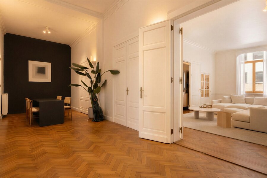 Pal in centrum en omgeven door cultuur, winkels en gastronomie bevindt dit uitzonderlijk ruim appartement zich. Een unieke woonst die luxe comfort en elegantie moeiteloos combineert.