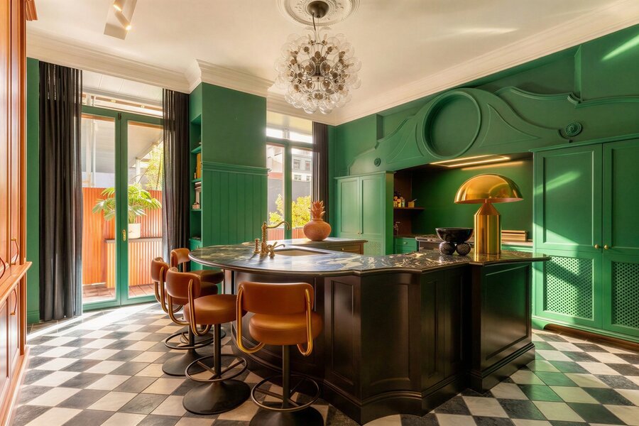 De royale leefruimte baadt in natuurlijk licht en straalt een ongeëvenaarde grandeur uit dankzij de hoge plafonds, kwaliteitsmaterialen en doordachte indeling. De volledig geïnstalleerde keuken met ontbijthoek als hart van de woning bevindt zich aan het rustgevende terras met zicht op de binnentuin en handelsbeurs. Perfect voor zowel dagelijkse rust als stijlvolle ontvangsten.