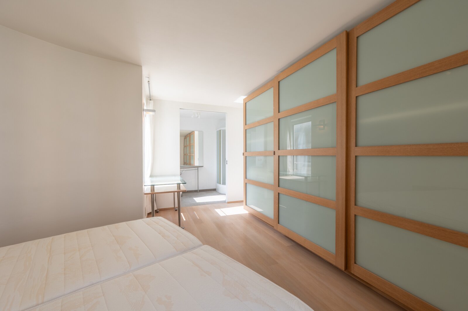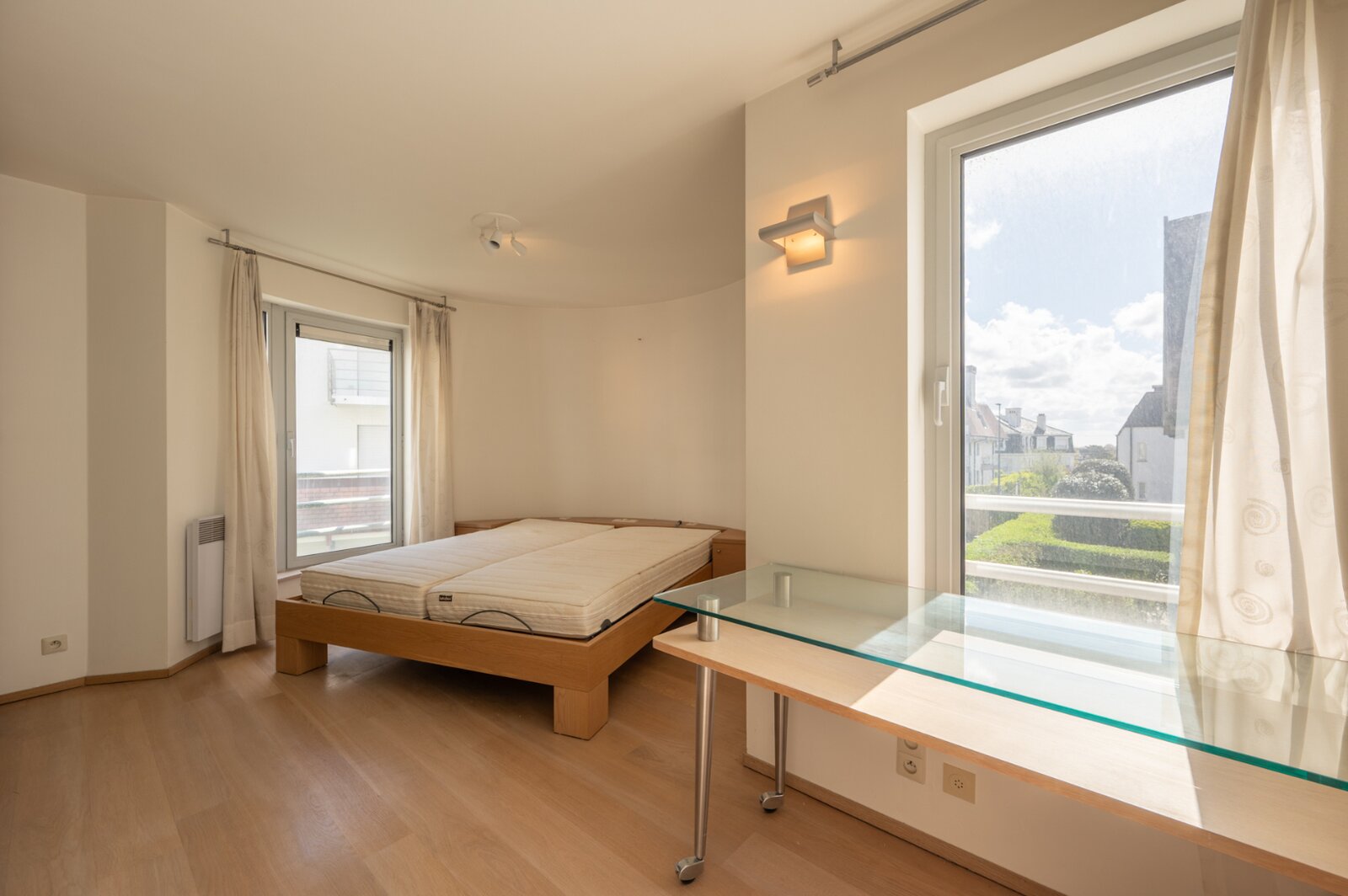 Het appartement beschikt over drie slaapkamers, waaronder een master bedroom met ensuite badkamer uitgerust met douche en lavabo. Daarnaast is er een aparte badkamer met ligbad, lavabo en aansluitingen voor een wasmachine. Verder is er een afzonderlijk toilet aanwezig.