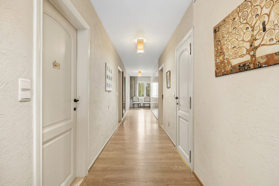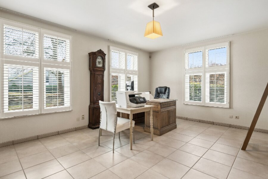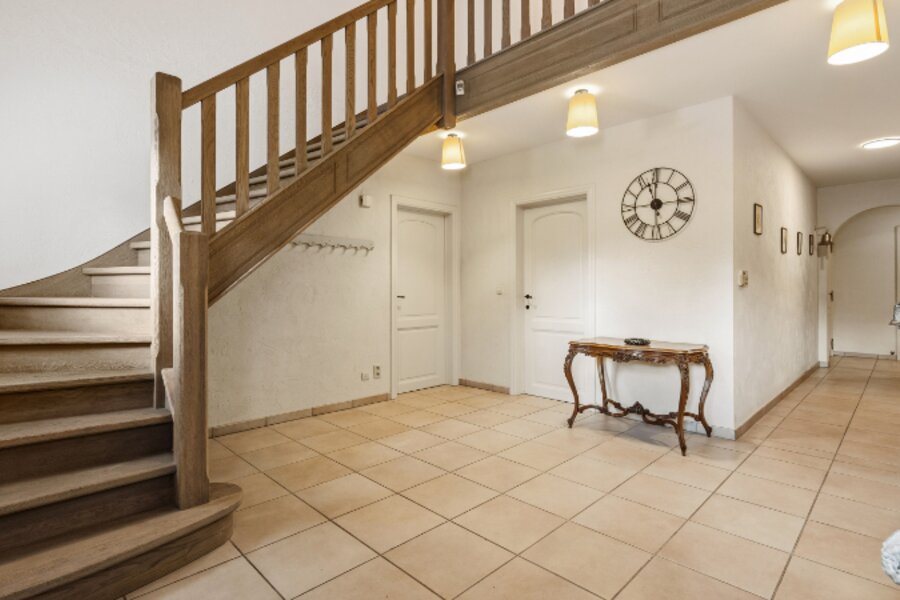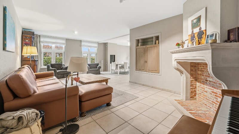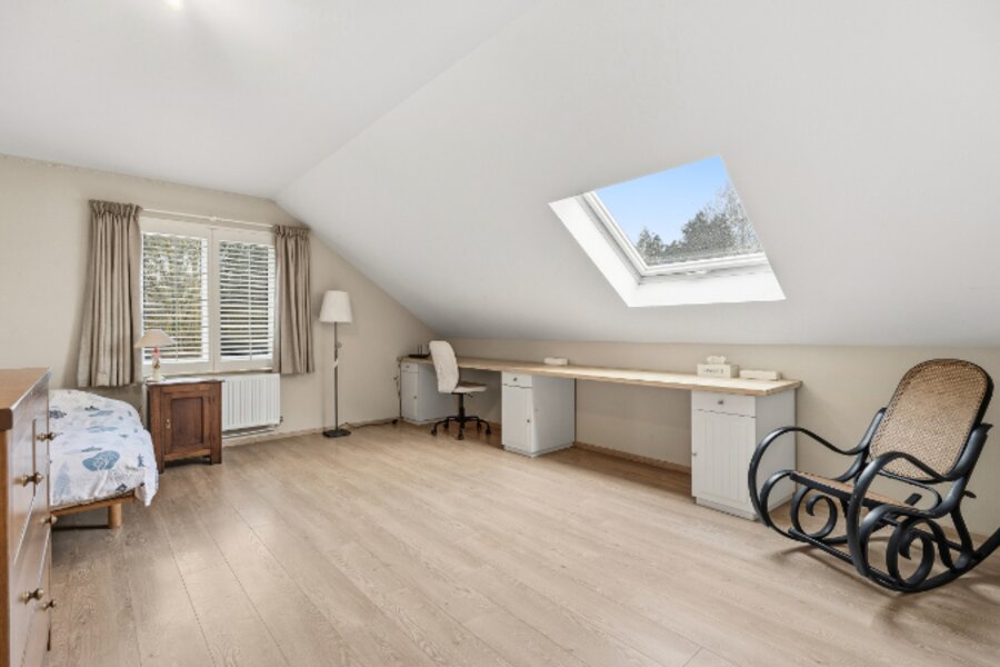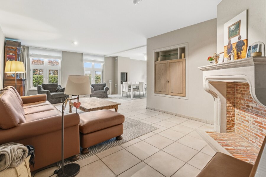 Omvat: inkomhal, wc, living 55m² met gashaard, volledig ingerichte keuken met eethoek, wasplaats-berging, dubbele garage, ruim bureel 24m², 5 ruime slaapkamers (41m² - 30m² - 25m² - 23m² - 15m²), 3 bad-of douchekamers (waarvan 1 slpk en 1 douchek op gelijkvloers), 2de wc, ruime bergzolder.